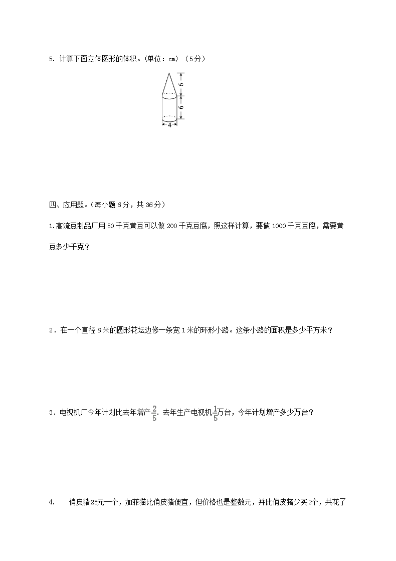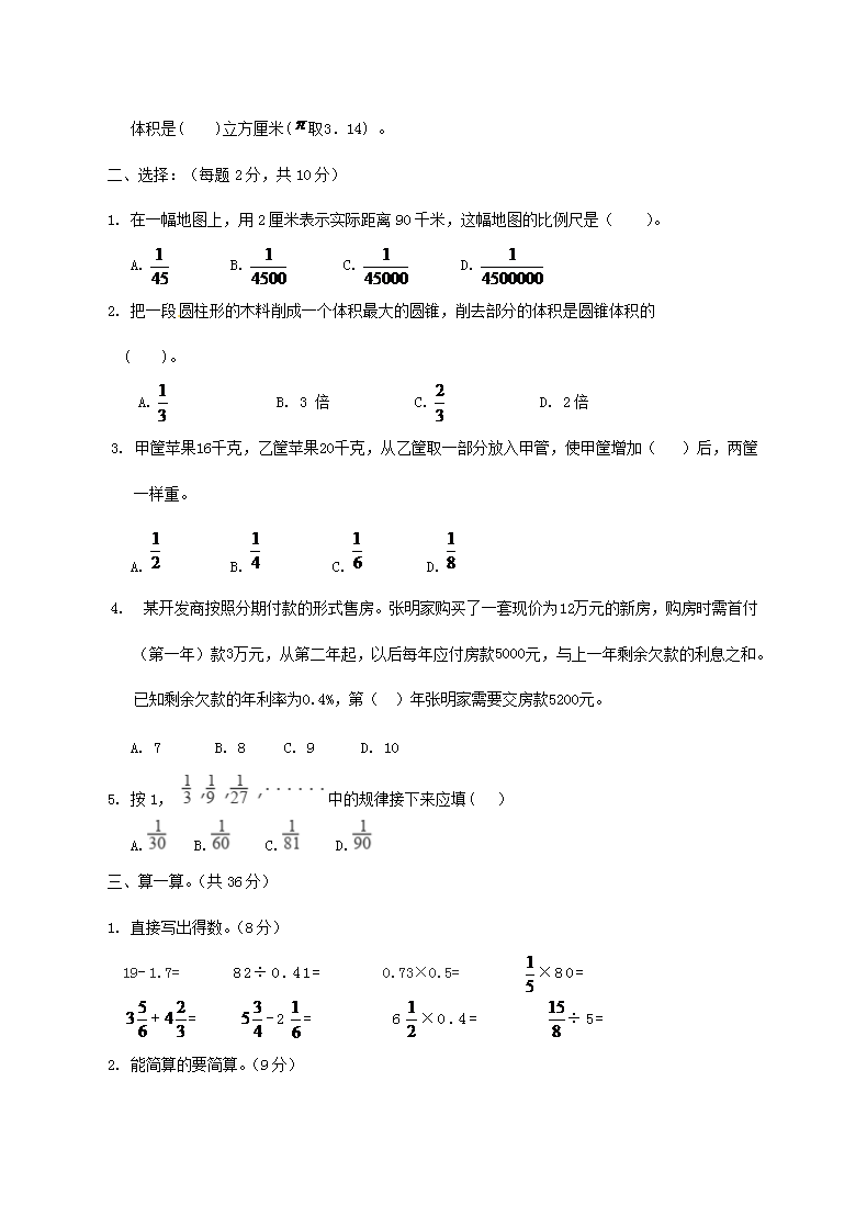 【文档名称】 2019年山东滨州小升初数学真题及答案(Word版).doc