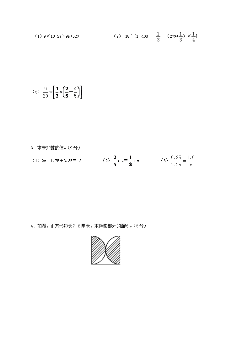 【文档预览】 无忧考网整理发布2019年山东滨州小升初数学真题及答案(Word版),前五页预览如下: