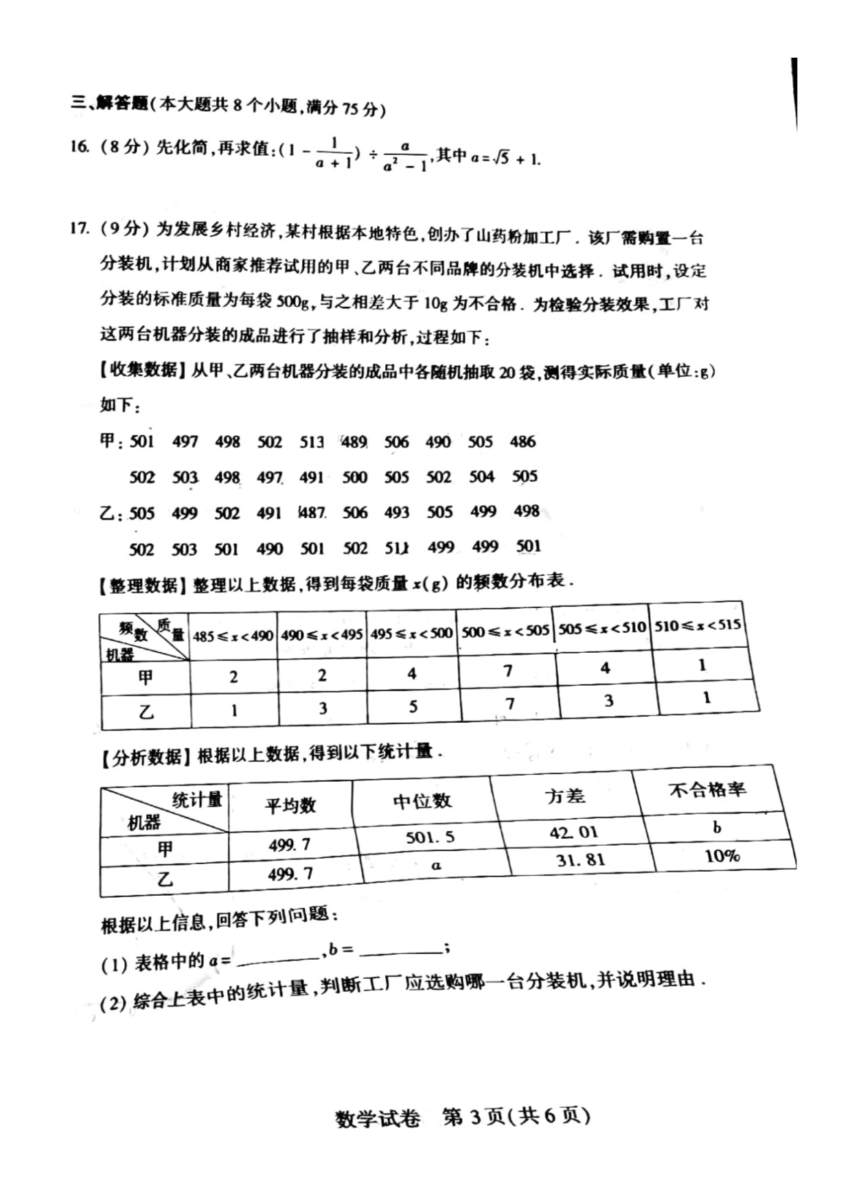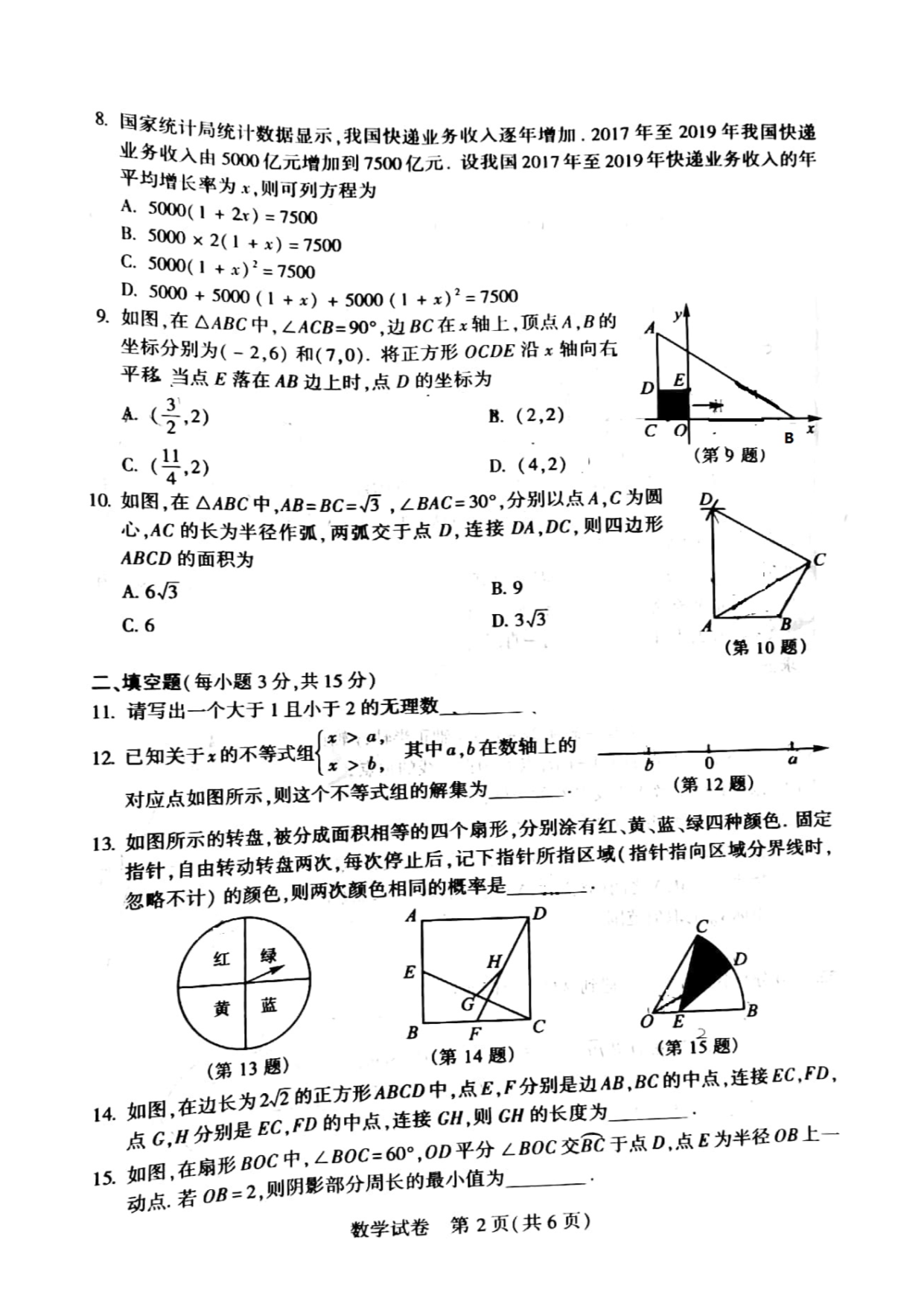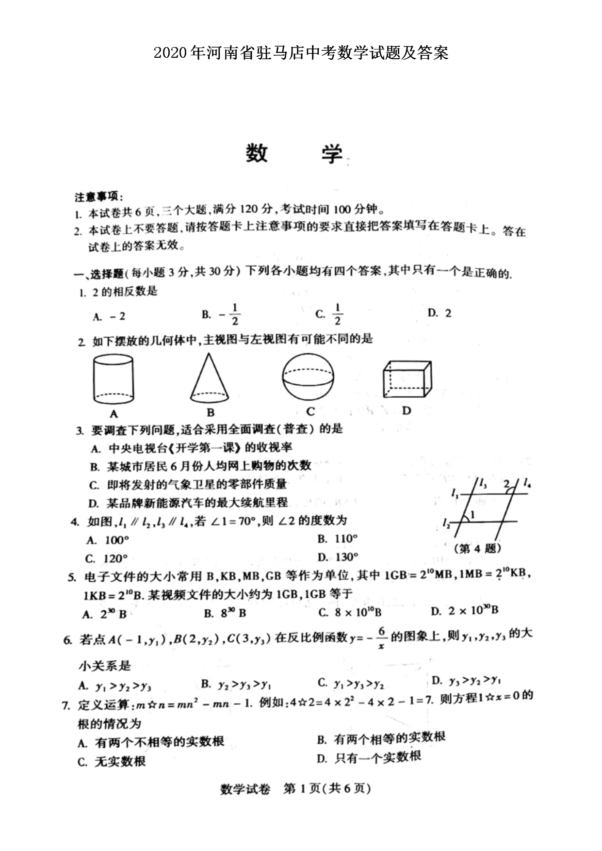 【文档名称】 2020年河南省驻马店中考数学试题及答案(图片版).doc