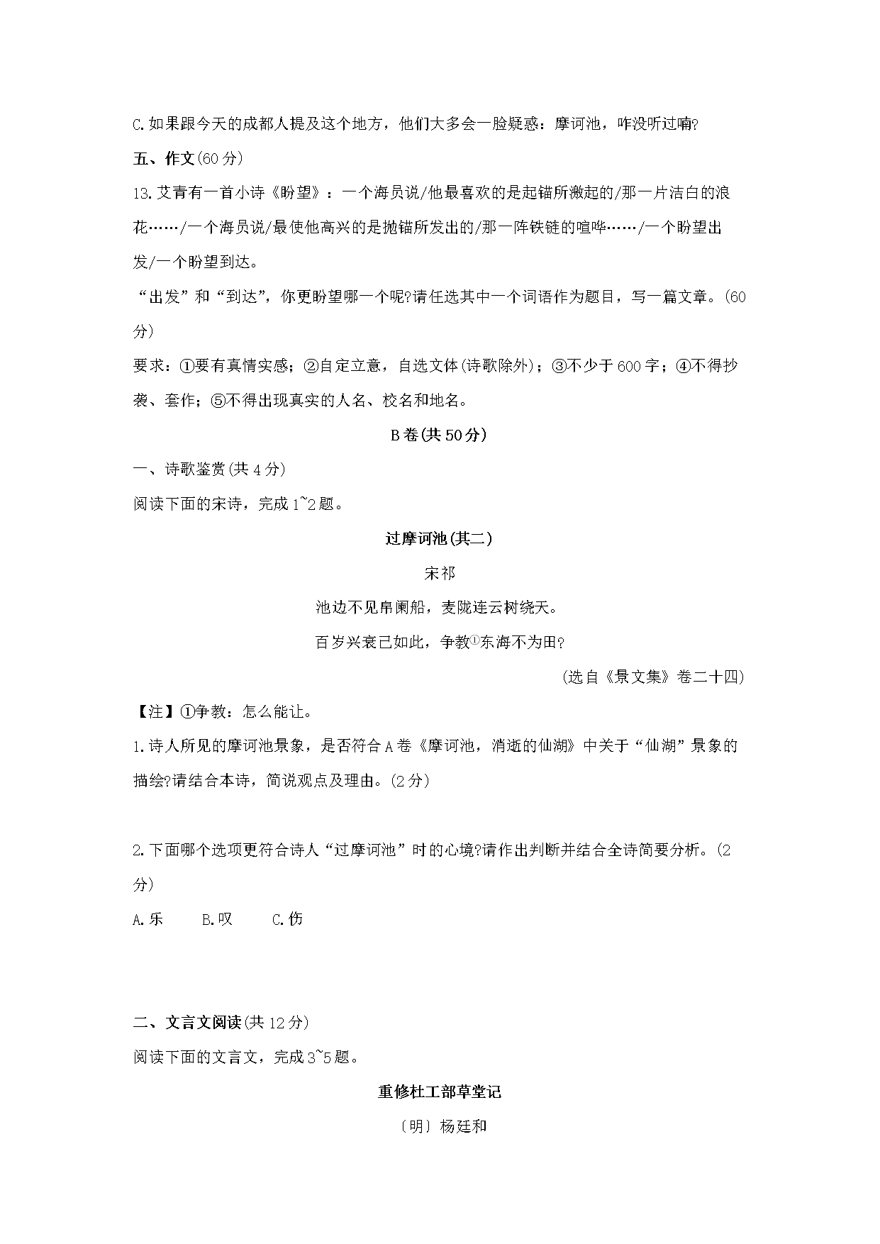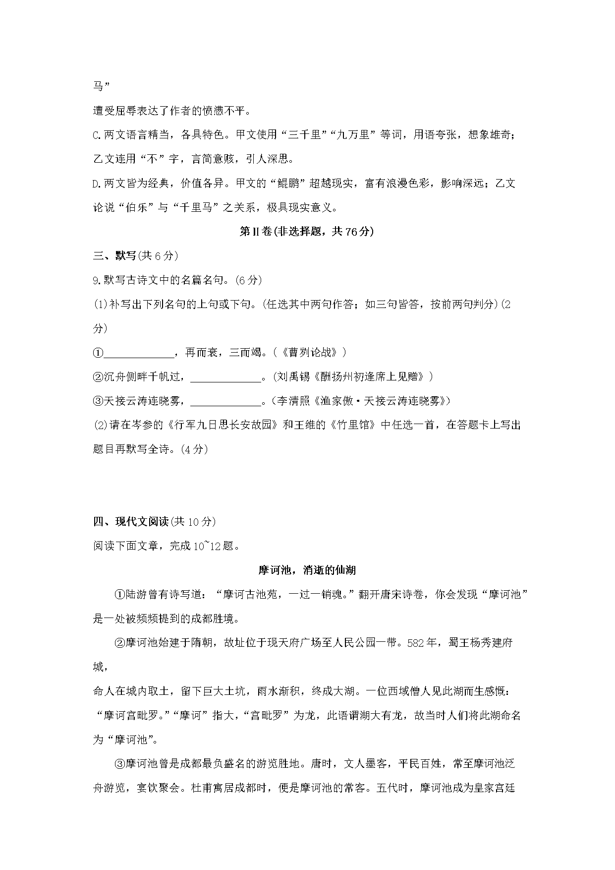 【文档名称】 2020年四川成都中考语文真题及答案(Word版).doc