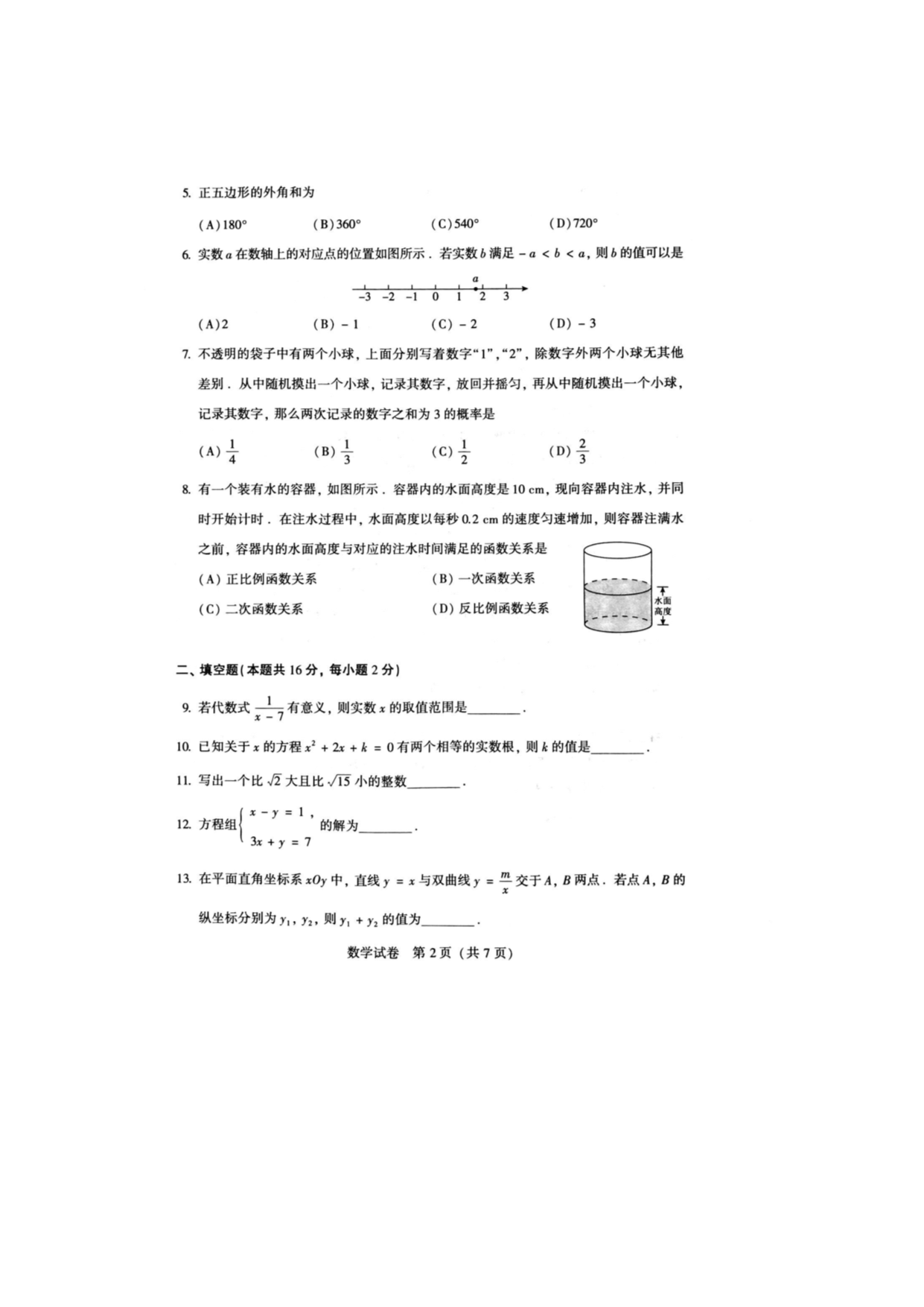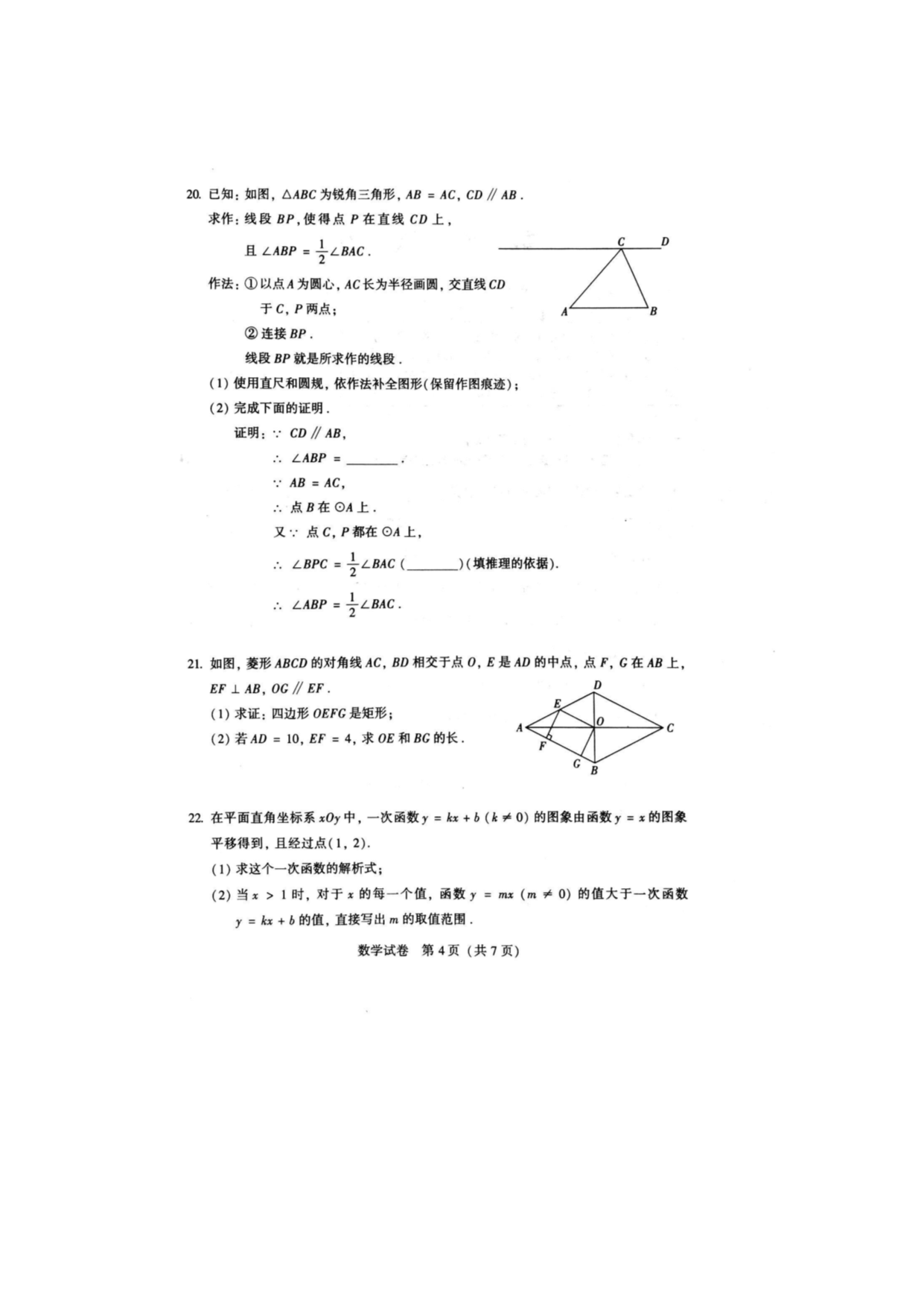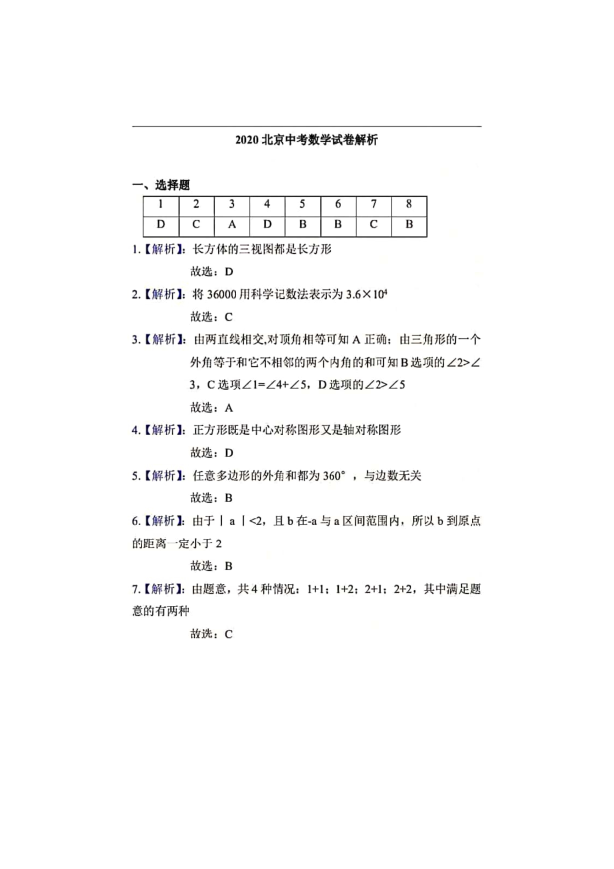 【文档名称】 2020年北京昌平中考数学试题及答案(Word版).doc