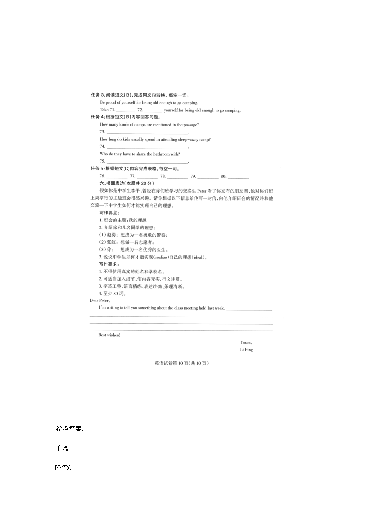 【文档名称】 2020年黑龙江哈尔滨中考英语真题及答案(图片版).doc