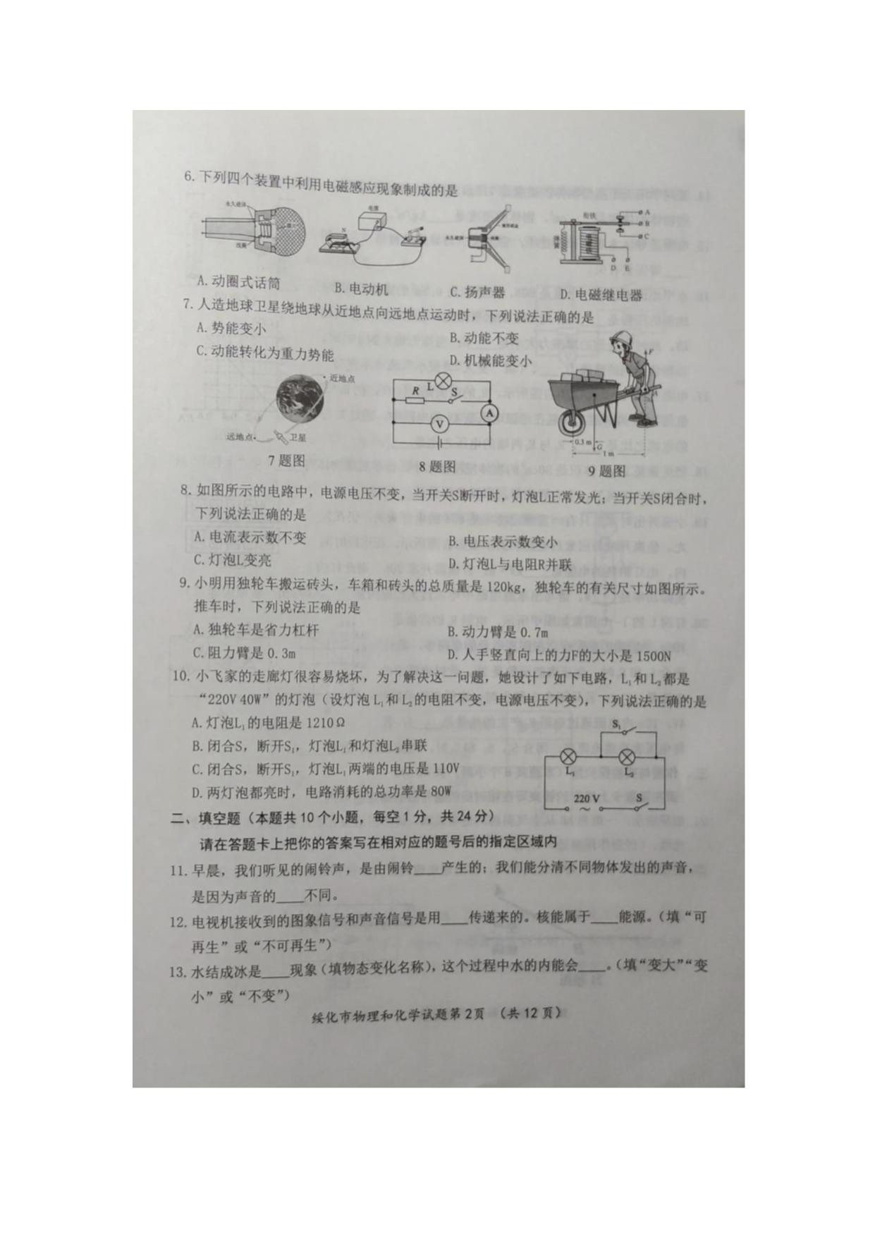 【文档名称】 2020年黑龙江绥化中考物理真题及答案(图片版).doc