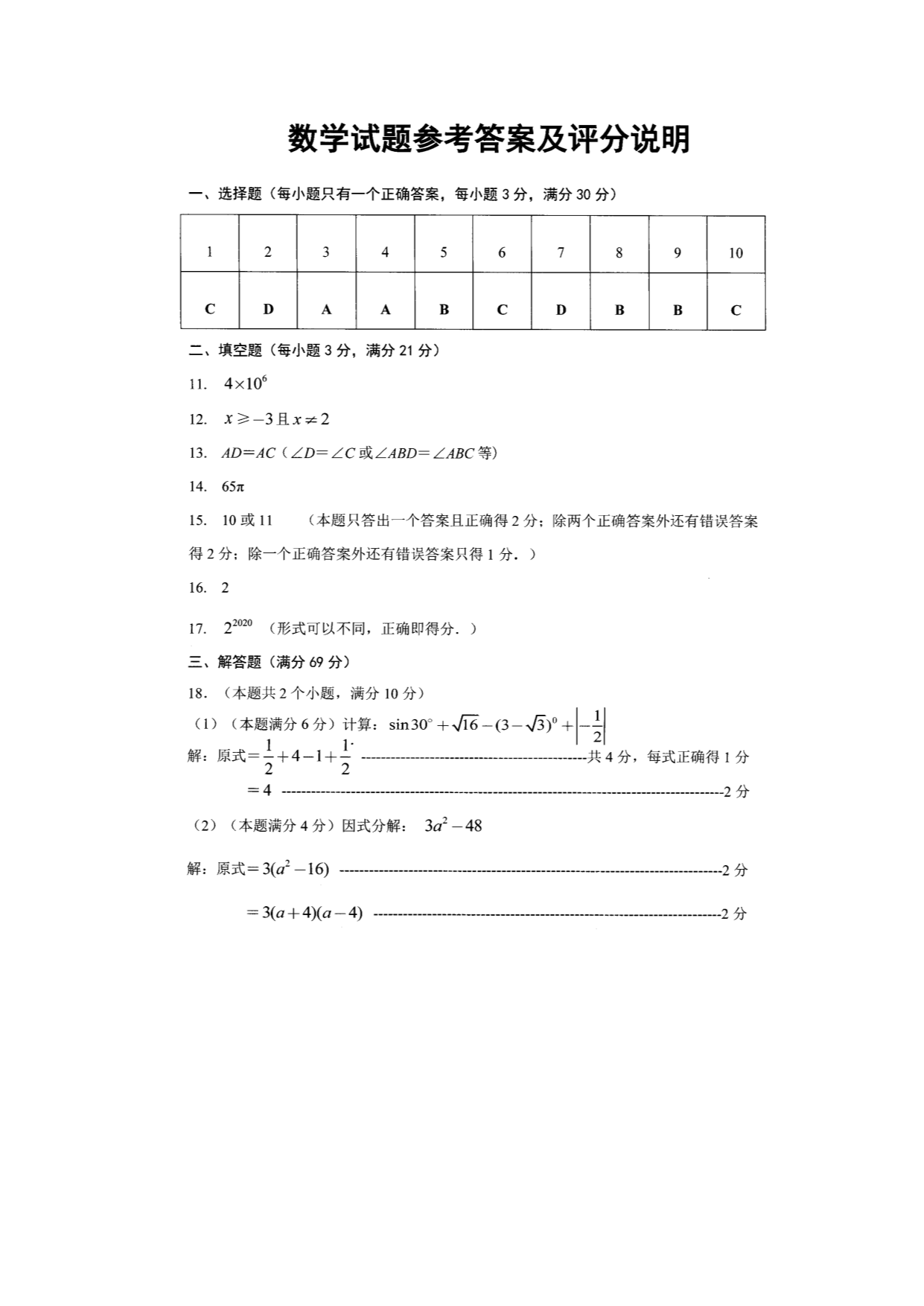 【文档名称】 2020年黑龙江黑河中考数学真题及答案(图片版).doc