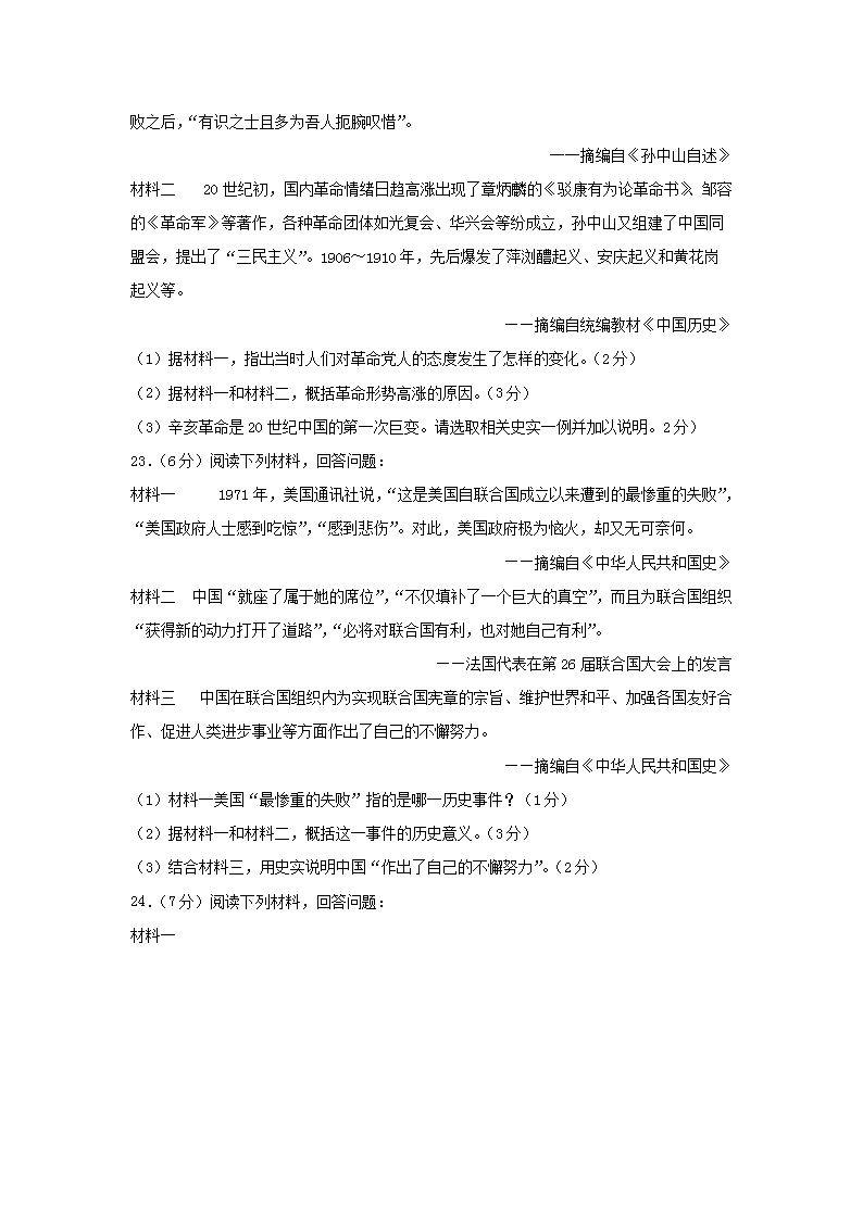 【文档预览】 无忧考网整理发布2020年河南省鹤壁中考历史试题及答案(Word版),前五页预览如下: