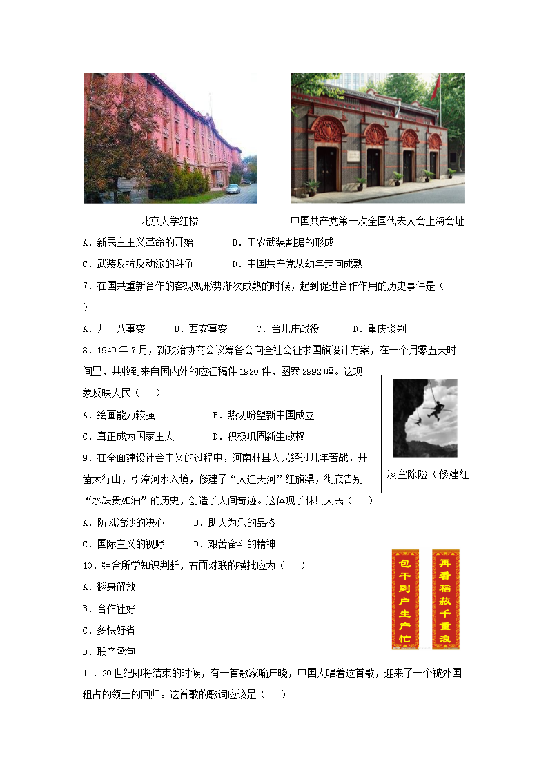 【文档名称】 2020年河南省鹤壁中考历史试题及答案(Word版).doc