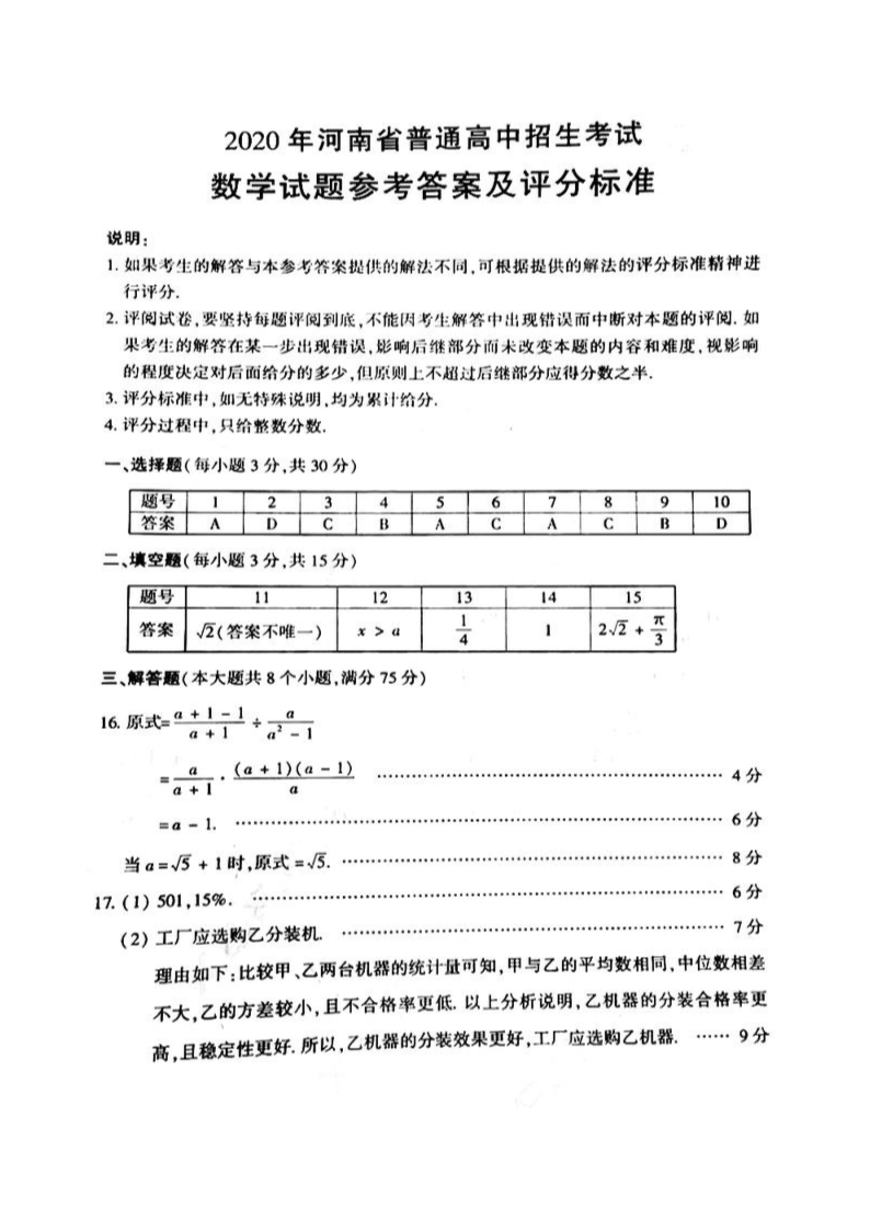 【文档名称】 2020年河南省漯河中考数学试题及答案(Word版).doc