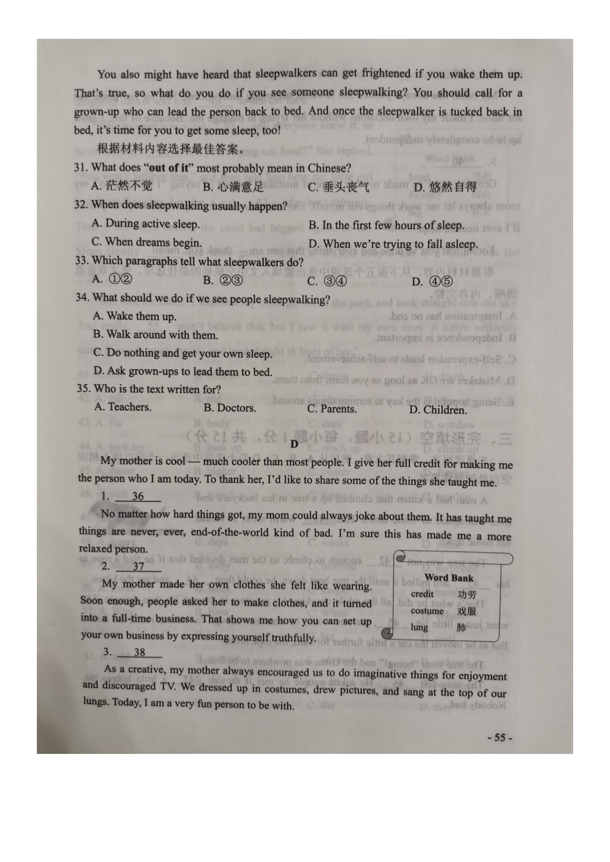 【文档名称】 2020年河南省南阳中考英语试题及答案(图片版).doc