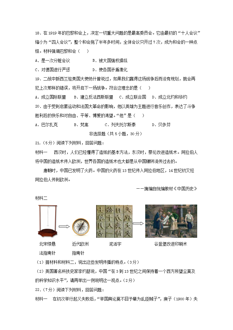 【文档名称】 2020年河南省新乡中考历史试题及答案(Word版).doc