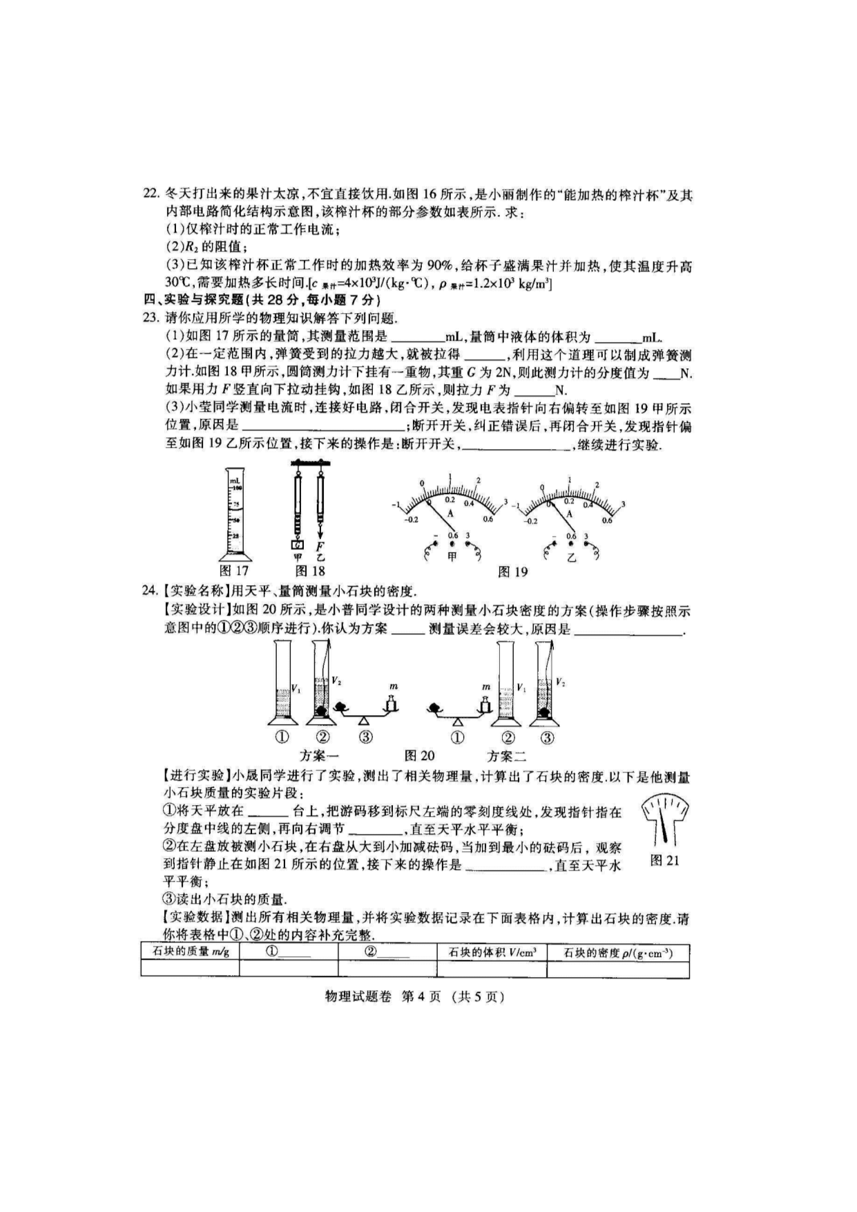【文档名称】 2020年江西九江中考物理试题及答案(图片版).doc