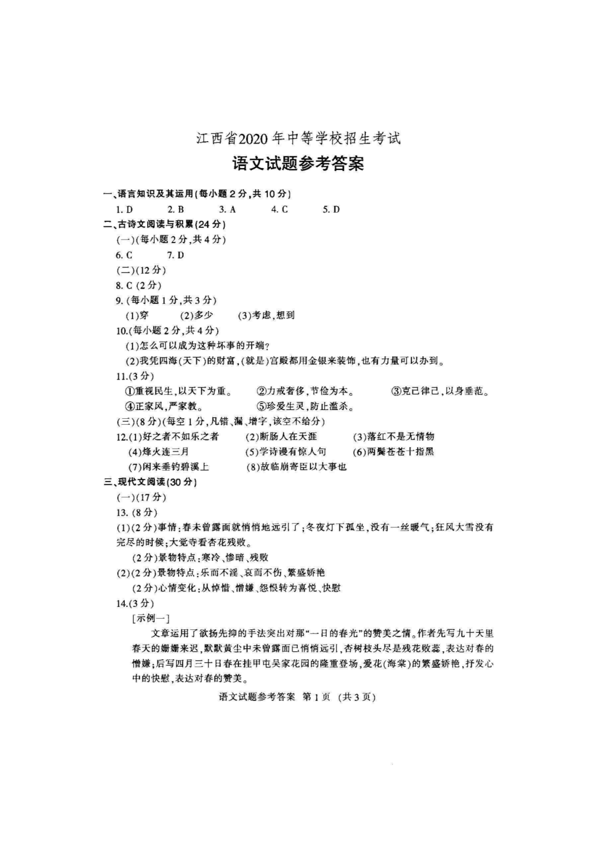 【文档名称】 2020年江西宜春中考语文试题及答案(图片版).doc