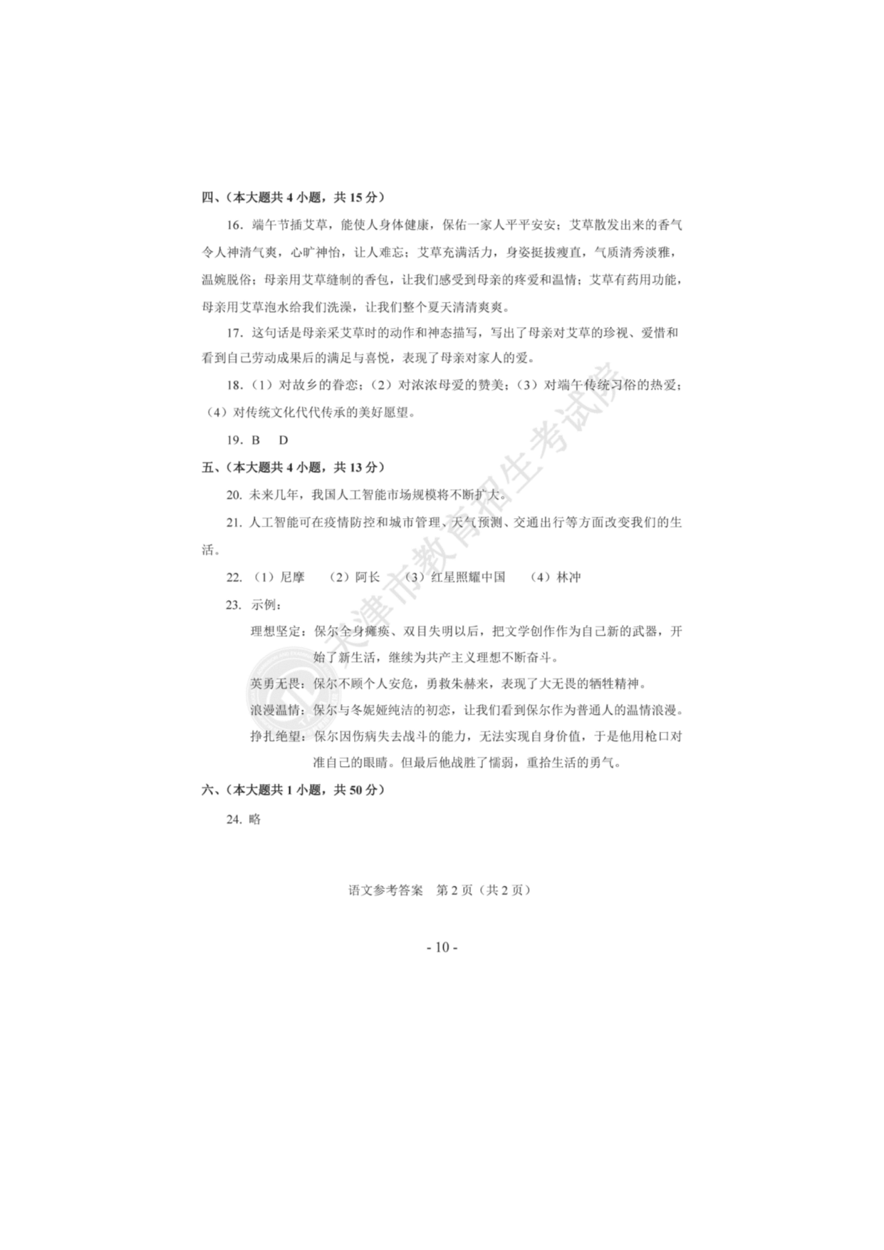 【文档预览】 无忧考网整理发布2020年天津蓟县中考语文真题及答案(图片版),前五页预览如下: