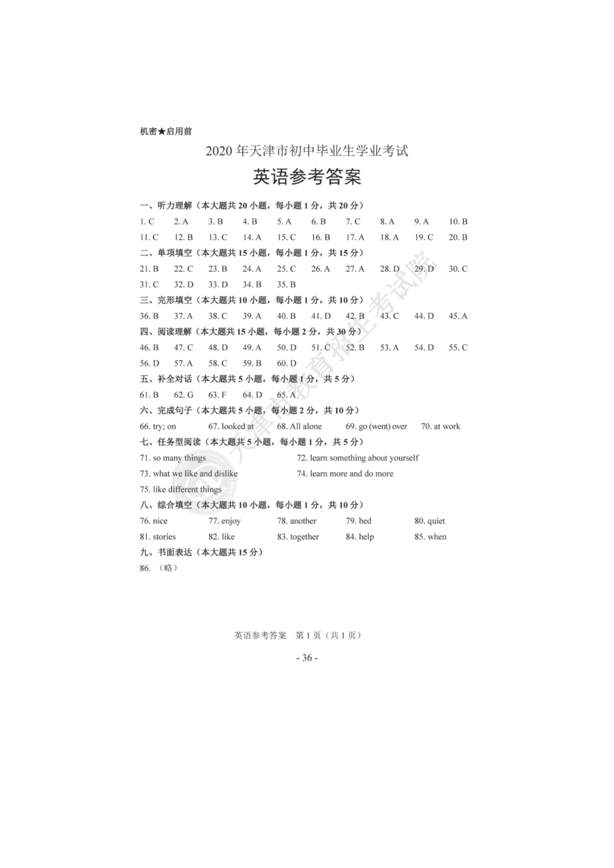 【文档名称】 2020年天津武清中考英语真题及答案(图片版).doc