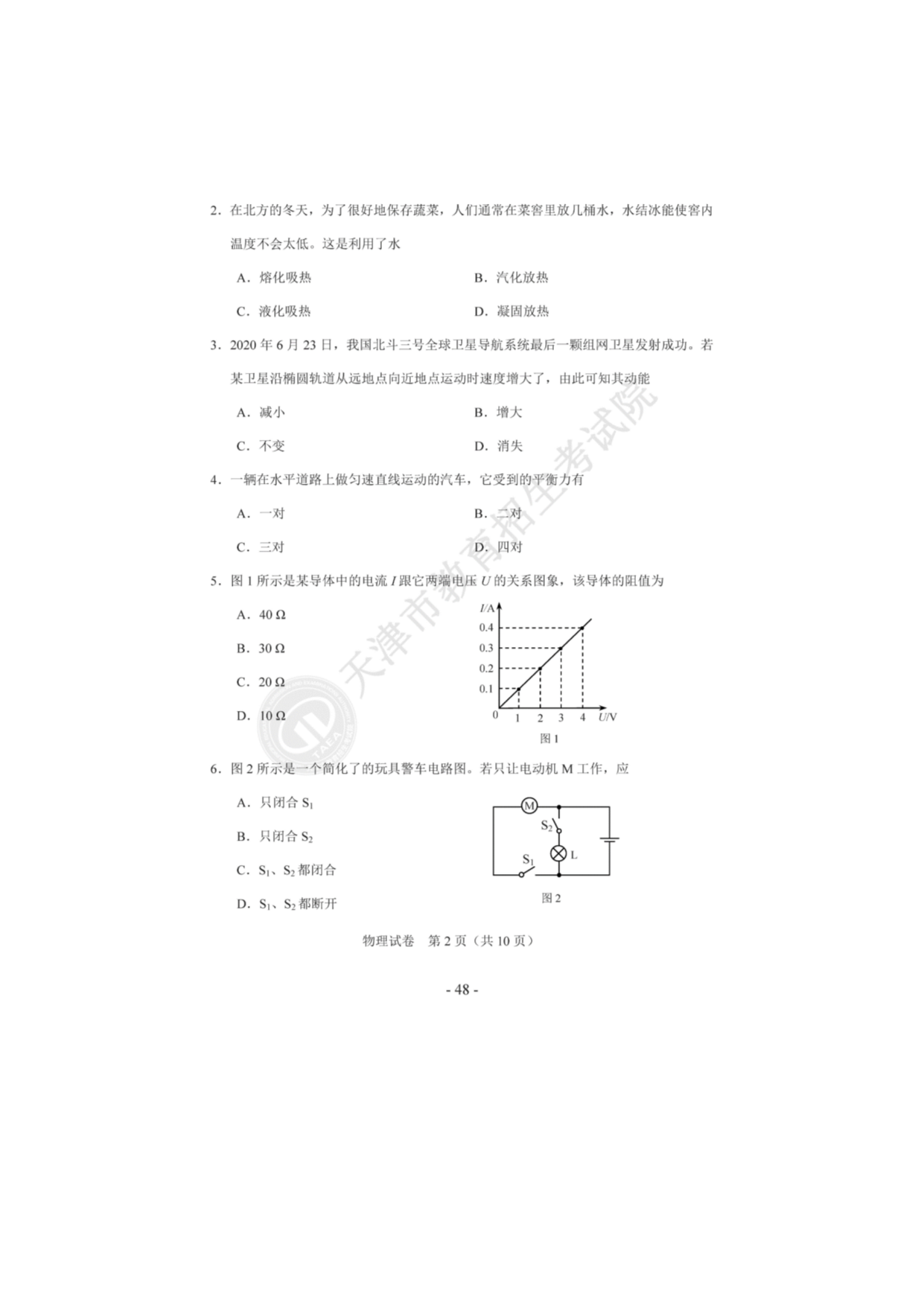 【文档预览】 无忧考网整理发布2020年天津武清中考物理真题及答案(图片版),前五页预览如下: