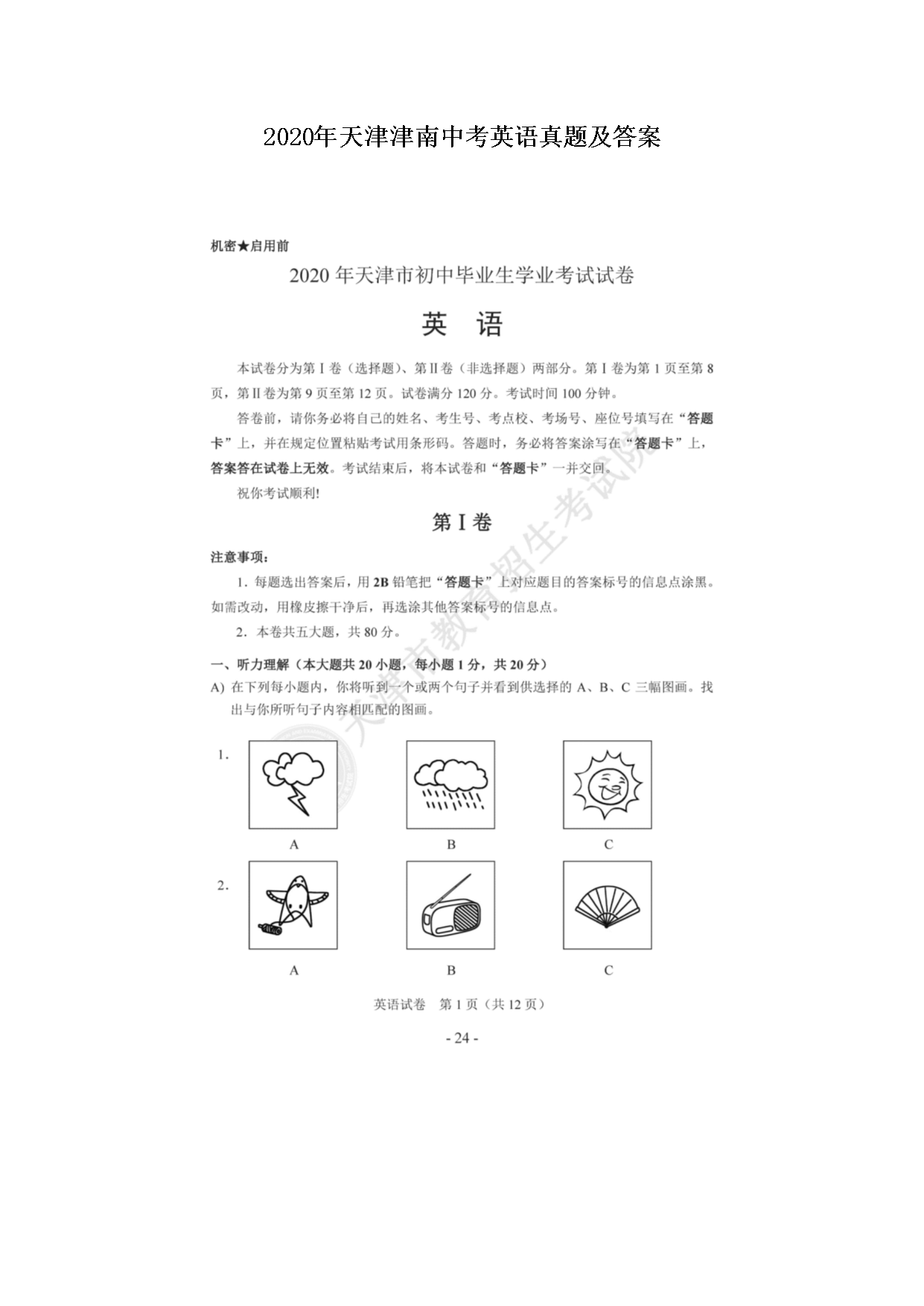 【文档预览】 无忧考网整理发布2020年天津津南中考英语真题及答案(图片版),前五页预览如下: