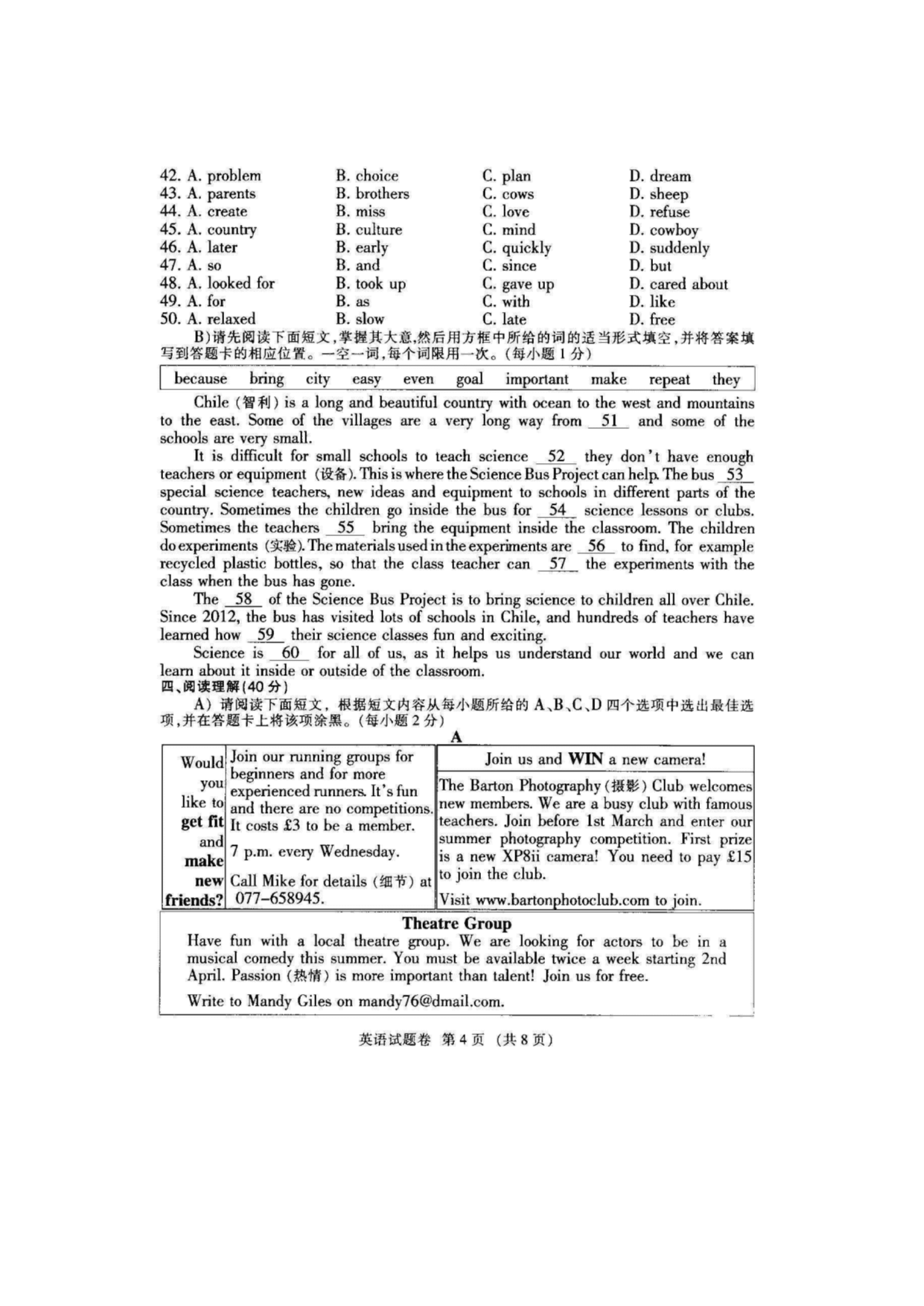 【文档名称】 2020年江西赣州中考英语试题及答案(图片版).doc