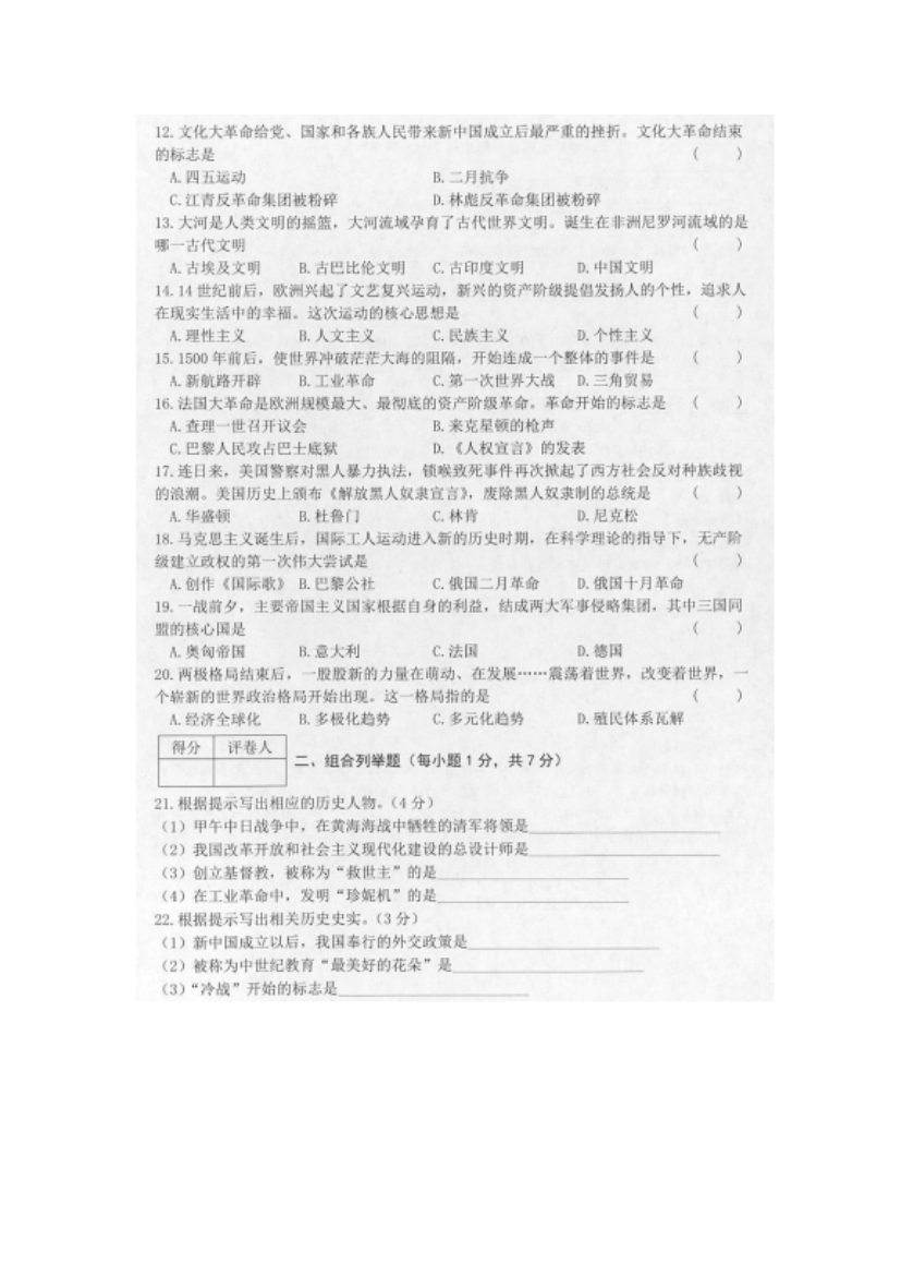 【文档预览】 无忧考网整理发布2020年黑龙江佳木斯中考历史真题及答案(图片版),前五页预览如下:
