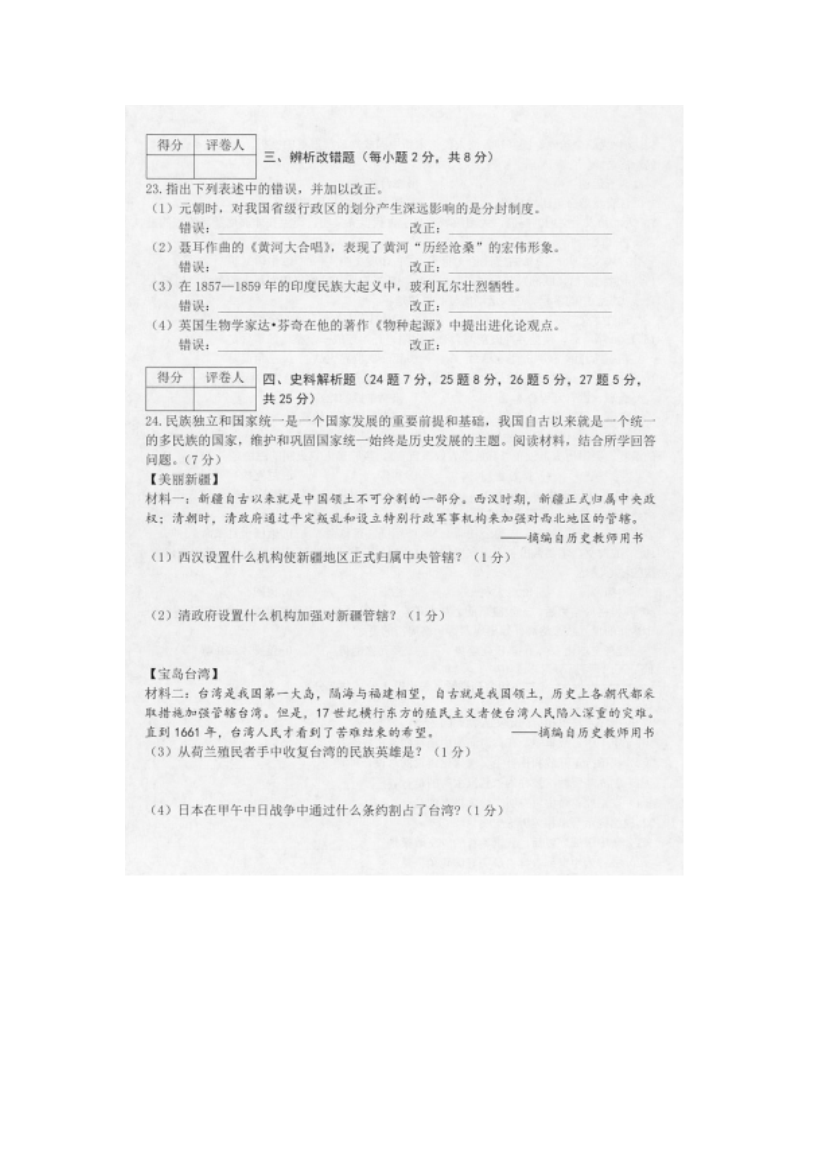 【文档预览】 无忧考网整理发布2020年黑龙江七台河中考历史真题及答案(图片版),前五页预览如下: