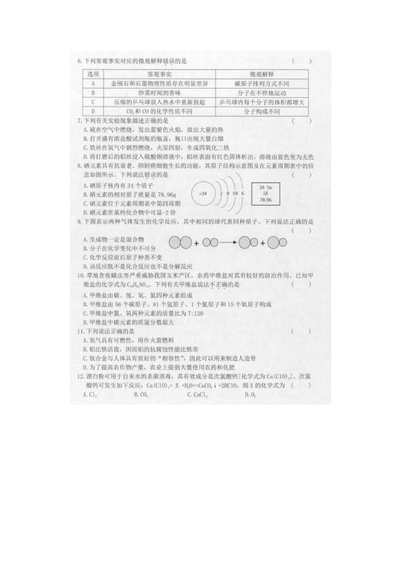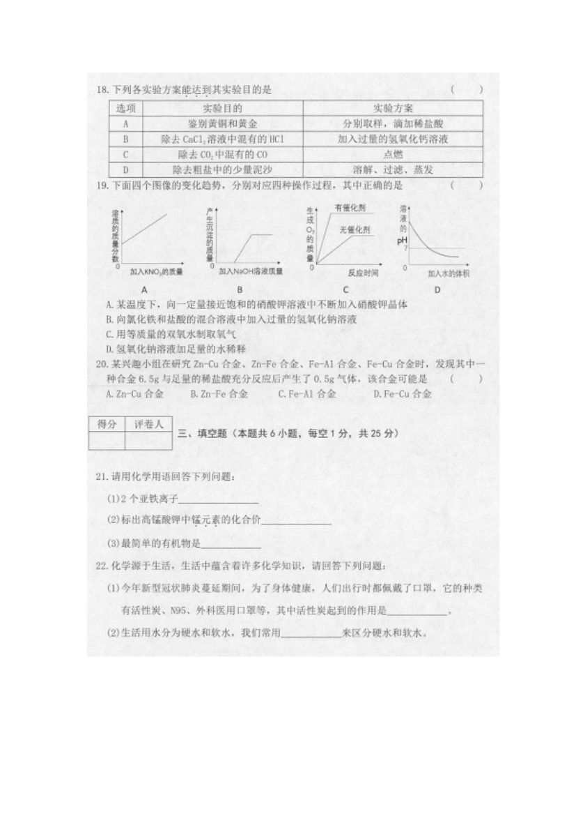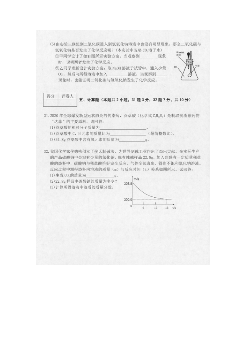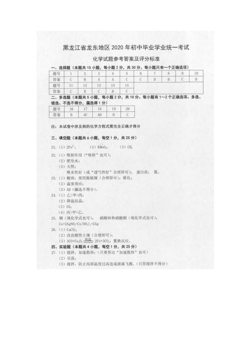【文档名称】 2020年黑龙江双鸭山中考化学真题及答案(图片版).doc