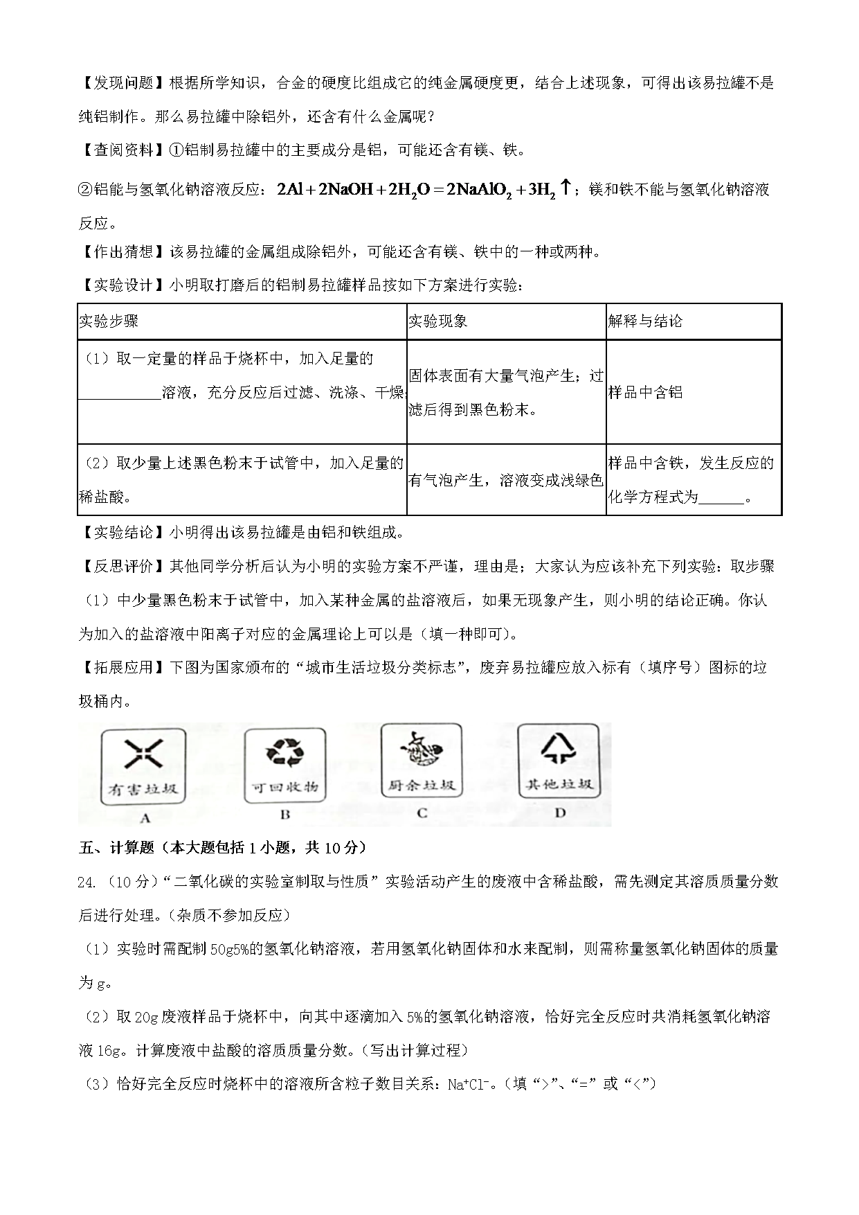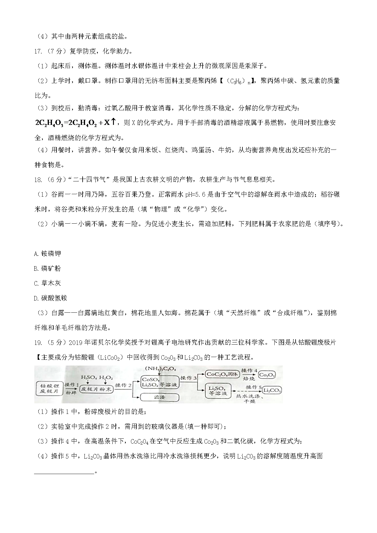 【文档预览】 无忧考网整理发布2020年江西鹰潭中考化学试题及答案(Word版),前五页预览如下: