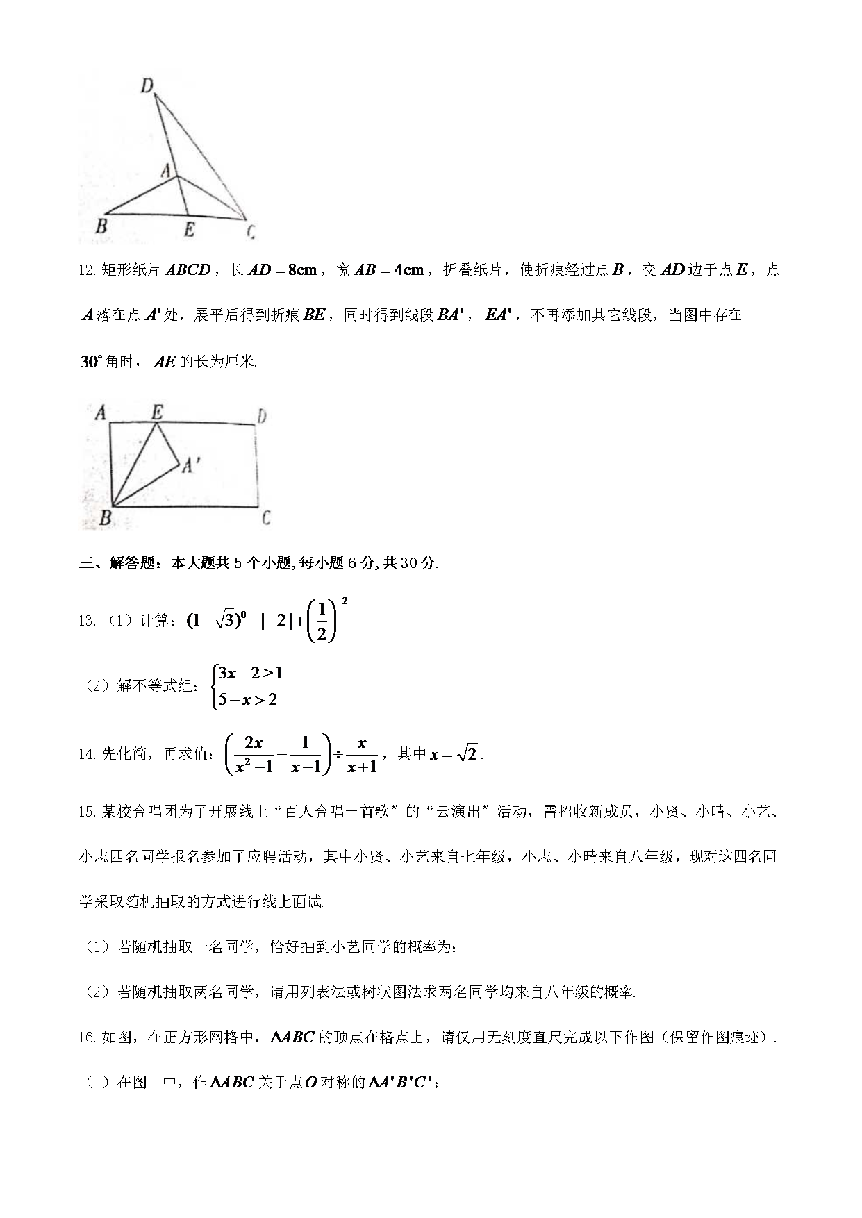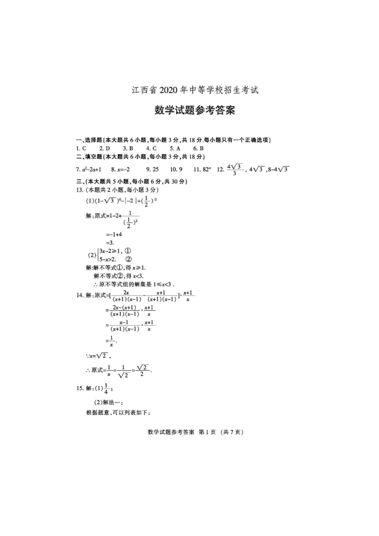 【文档名称】 2020年江西鹰潭中考数学试题及答案(Word版).doc