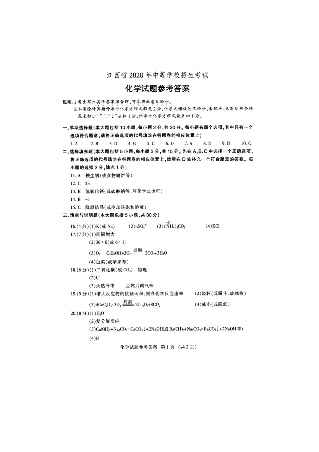 【文档预览】 无忧考网整理发布2020年江西九江中考化学试题及答案(Word版),前五页预览如下: