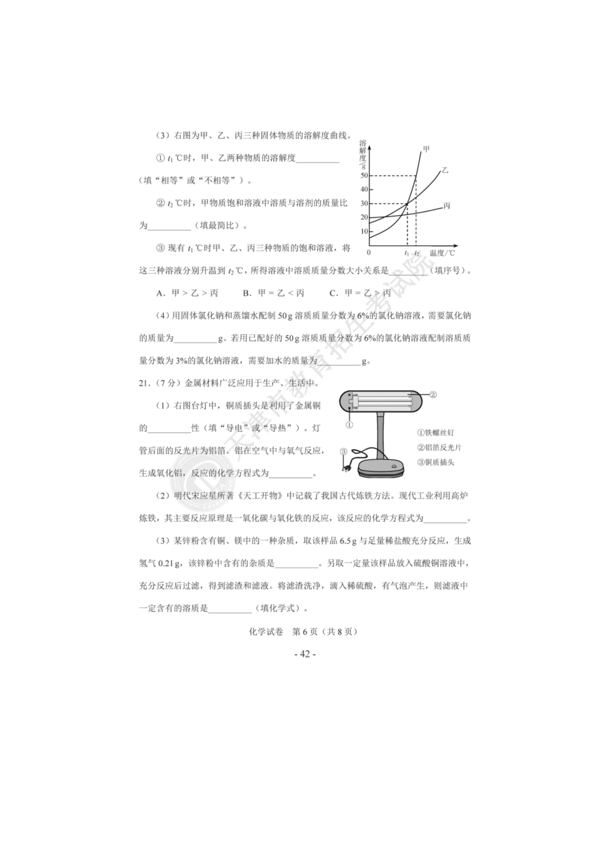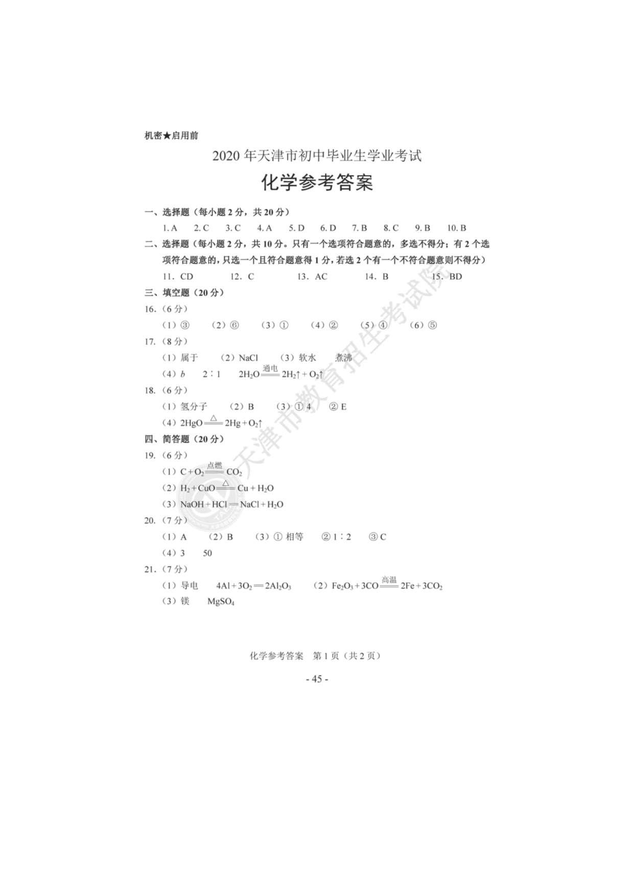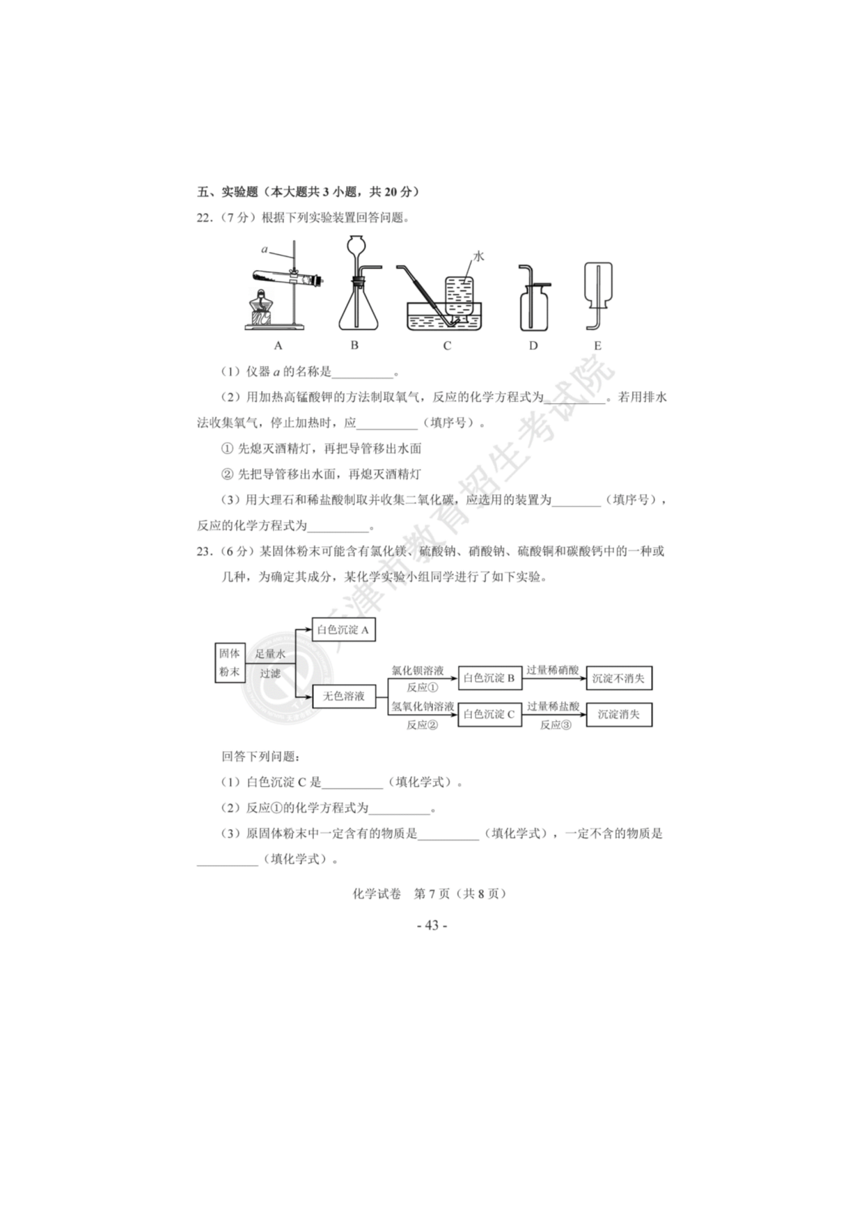 【文档预览】 无忧考网整理发布2020年天津河北区中考化学真题及答案(图片版),前五页预览如下: