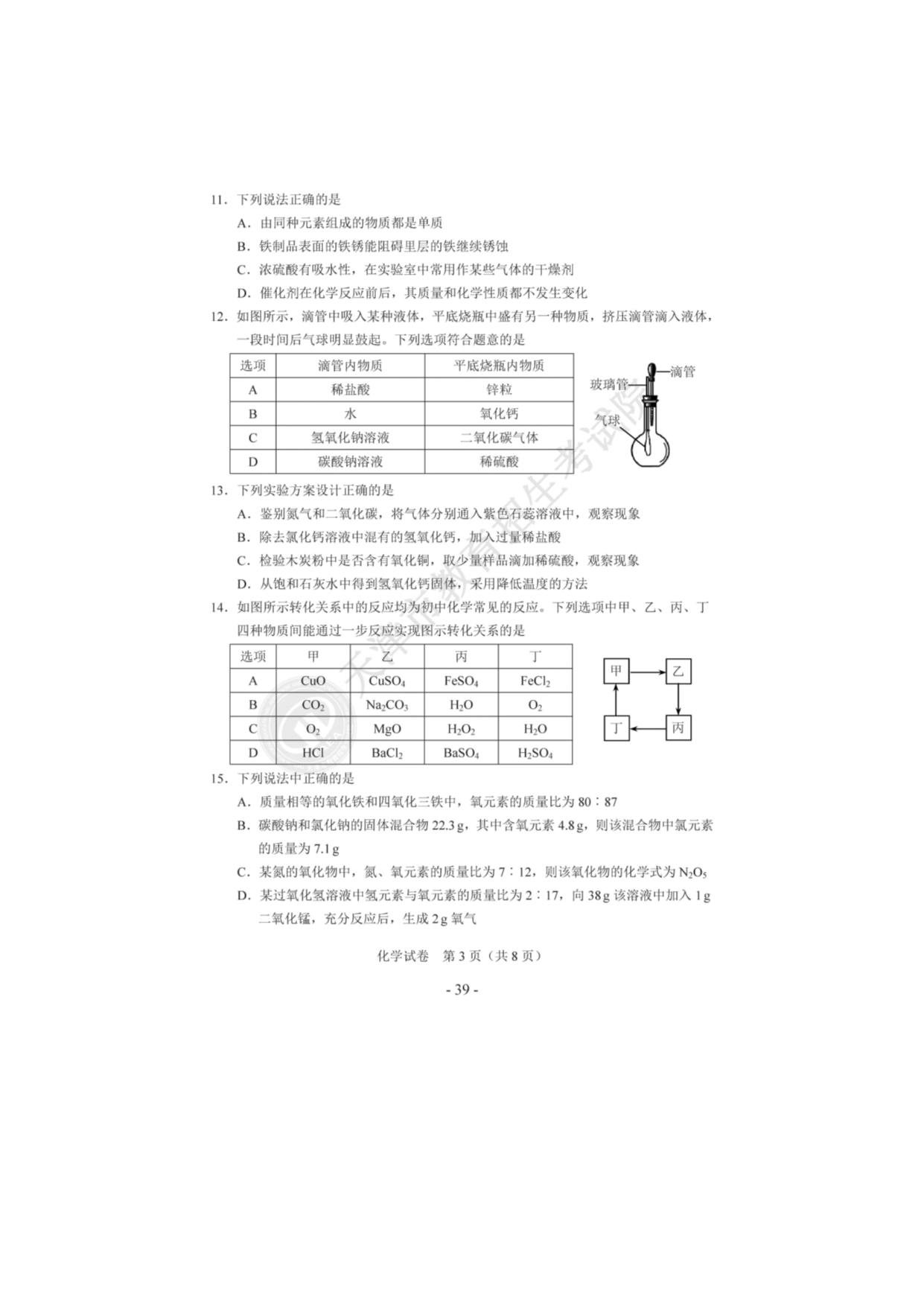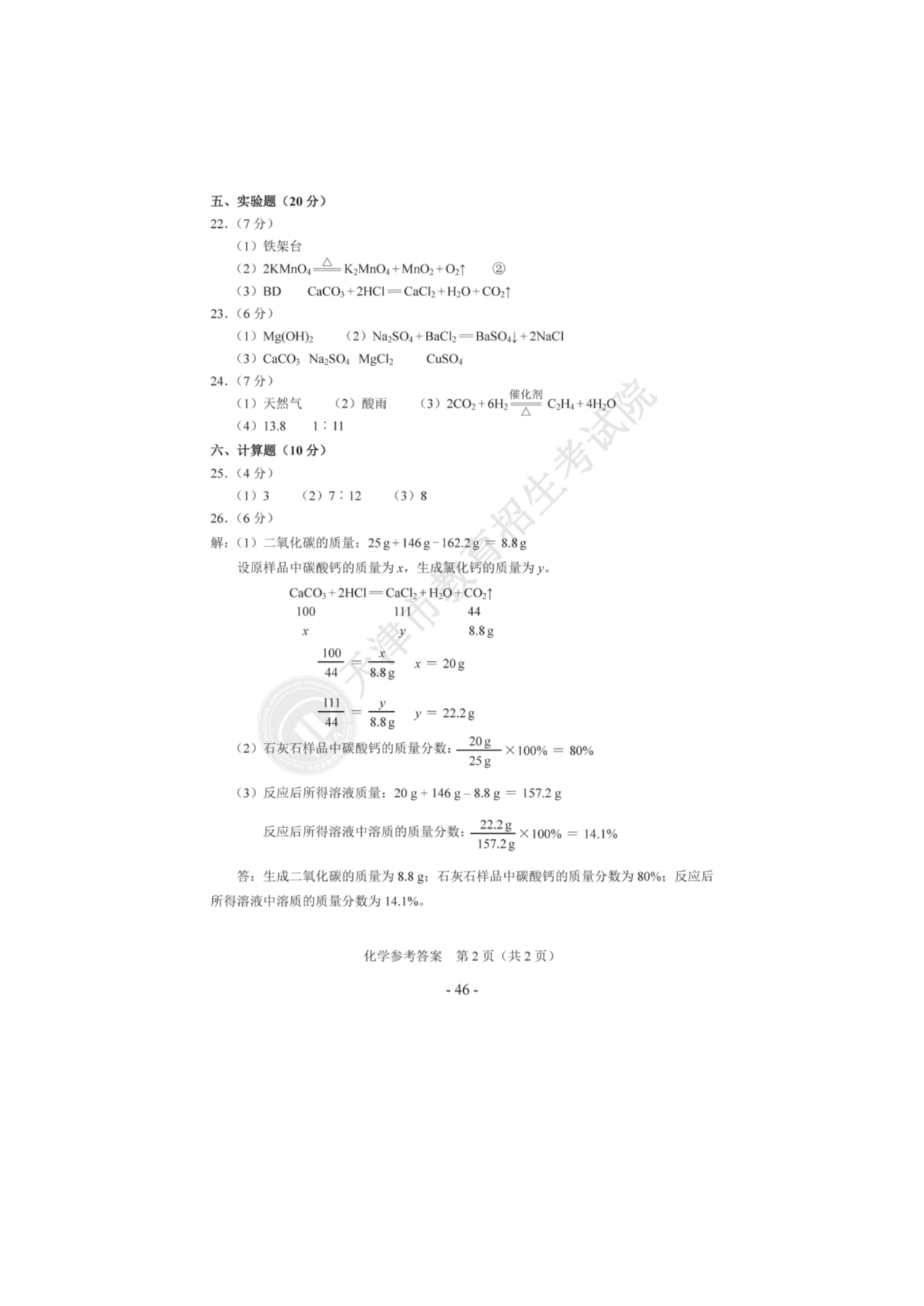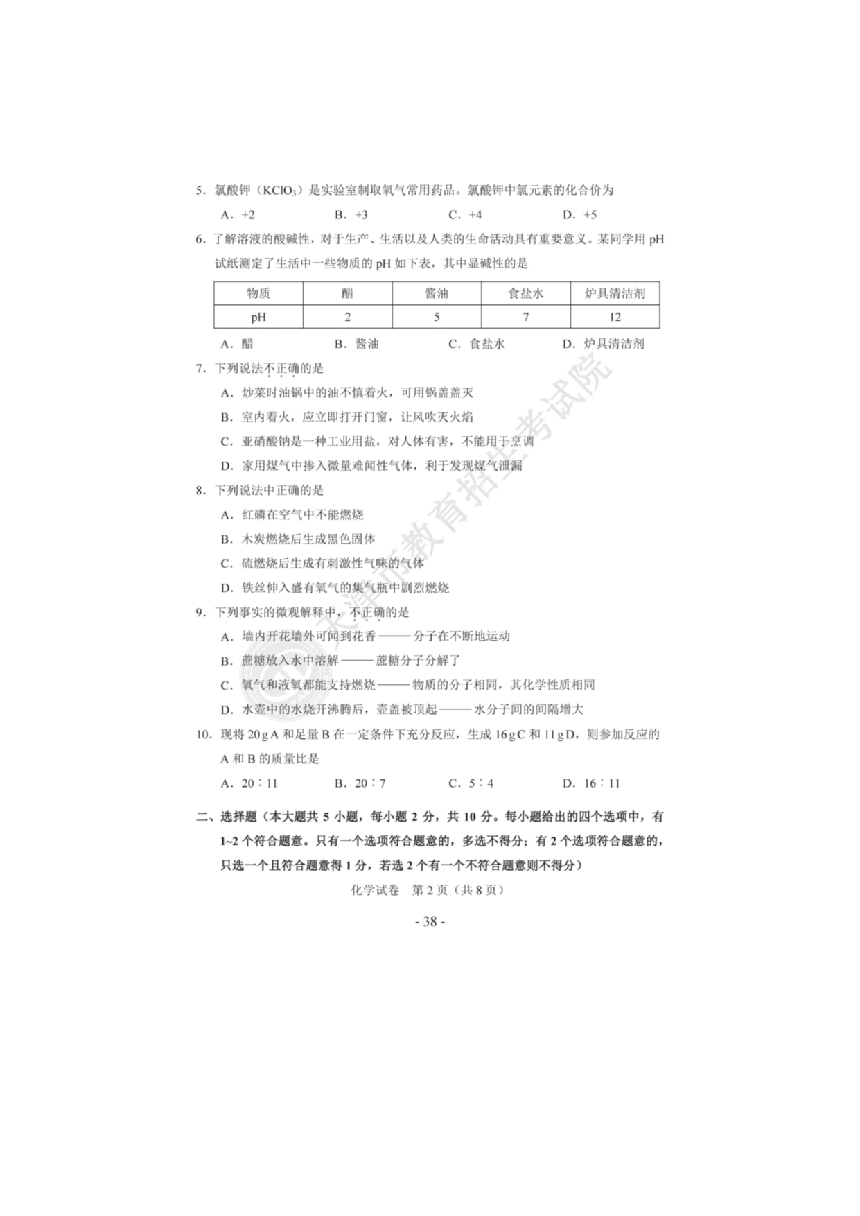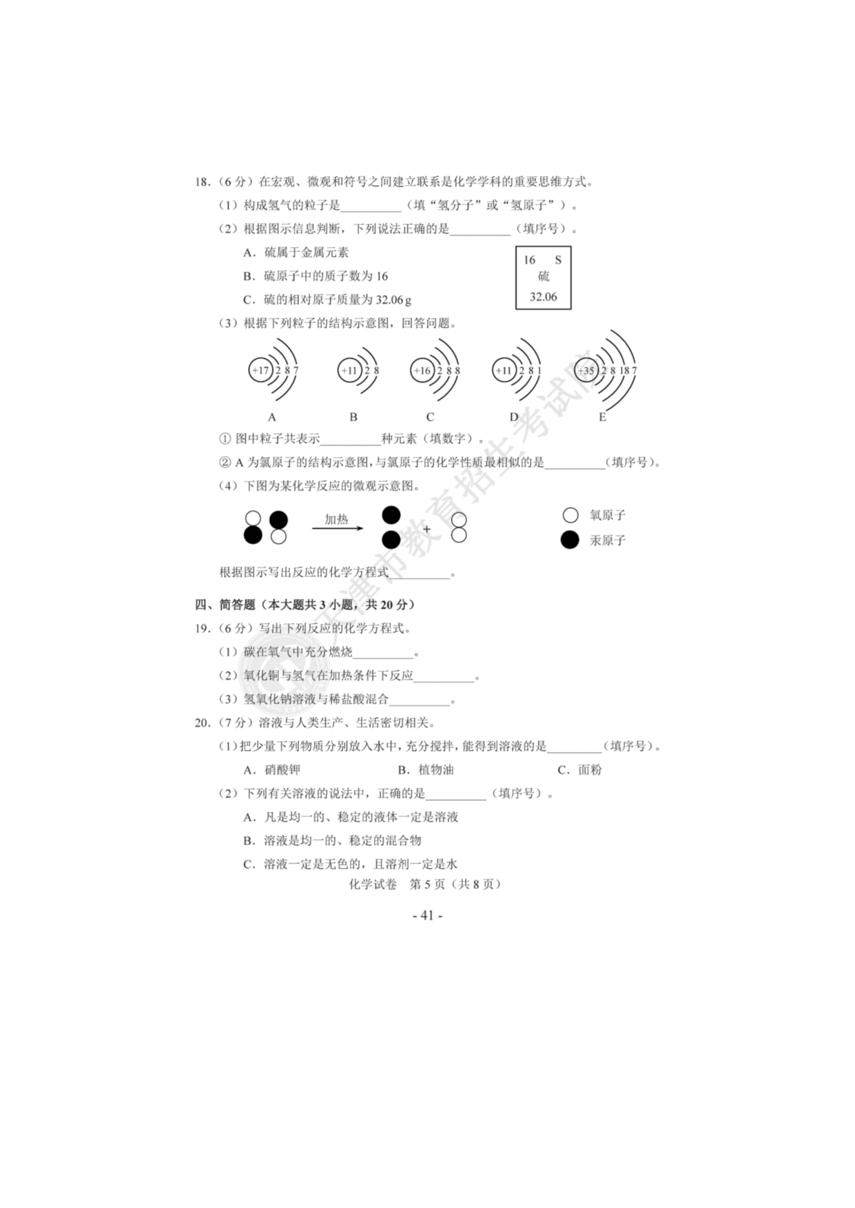【文档预览】 无忧考网整理发布2020年天津河北区中考化学真题及答案(图片版),前五页预览如下: