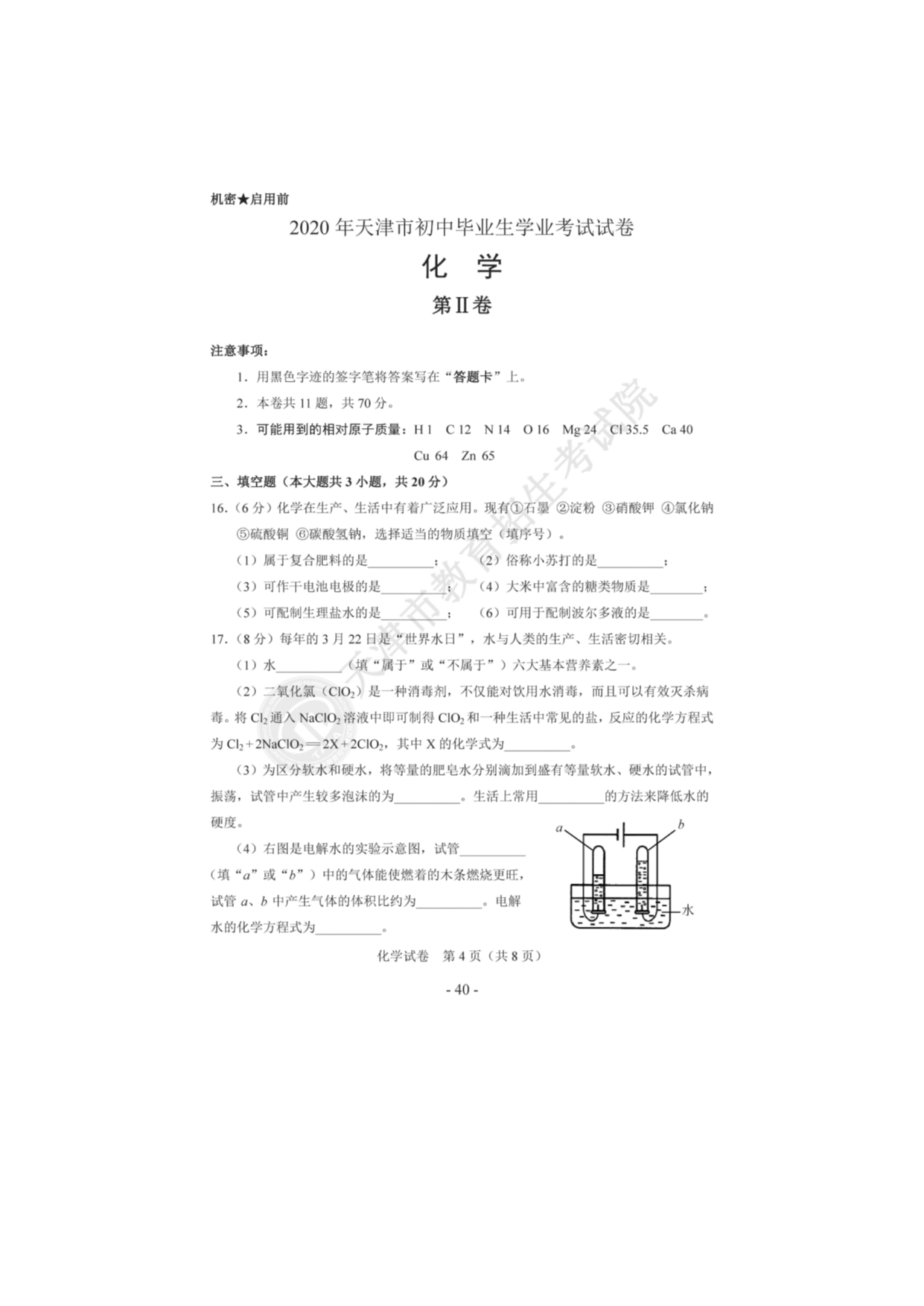 【文档名称】 2020年天津河北区中考化学真题及答案(图片版).doc