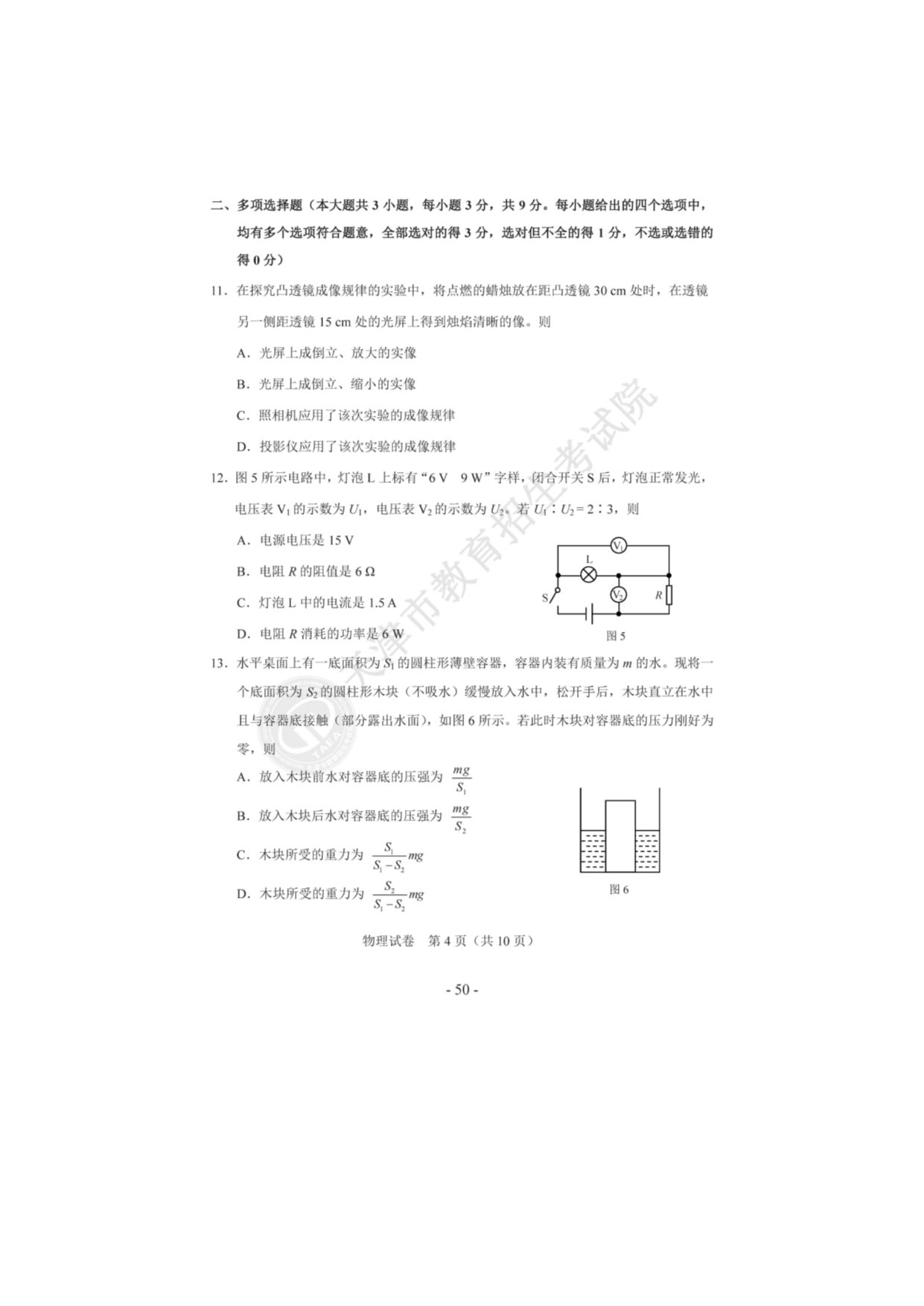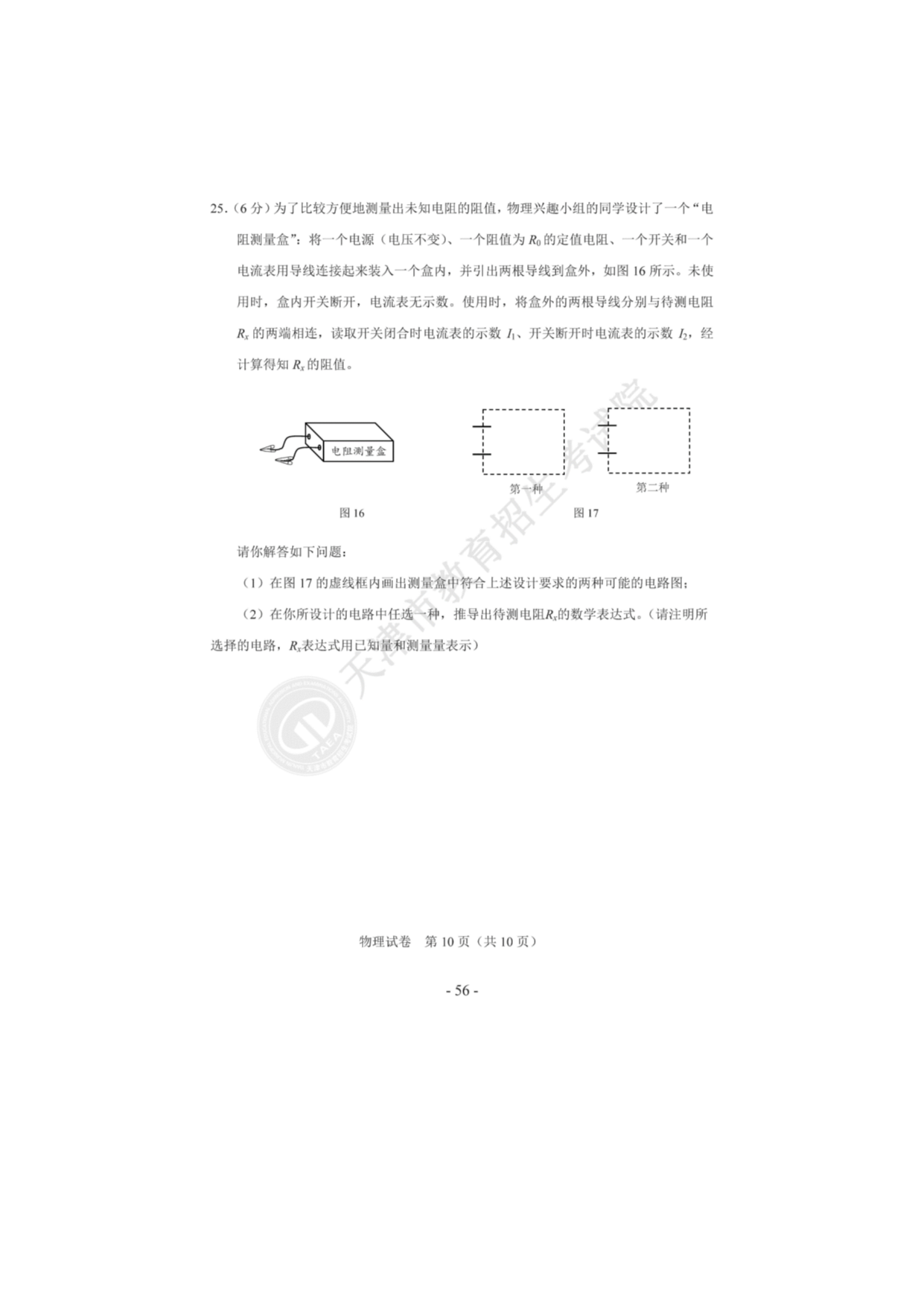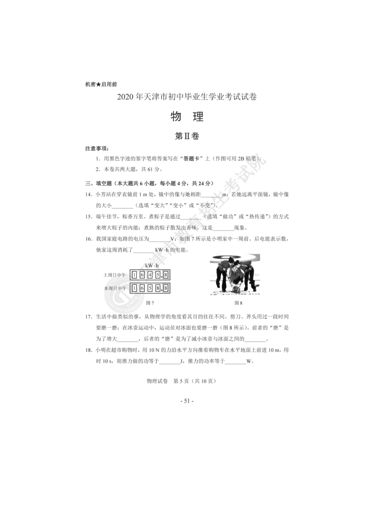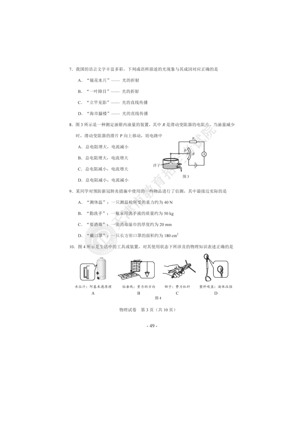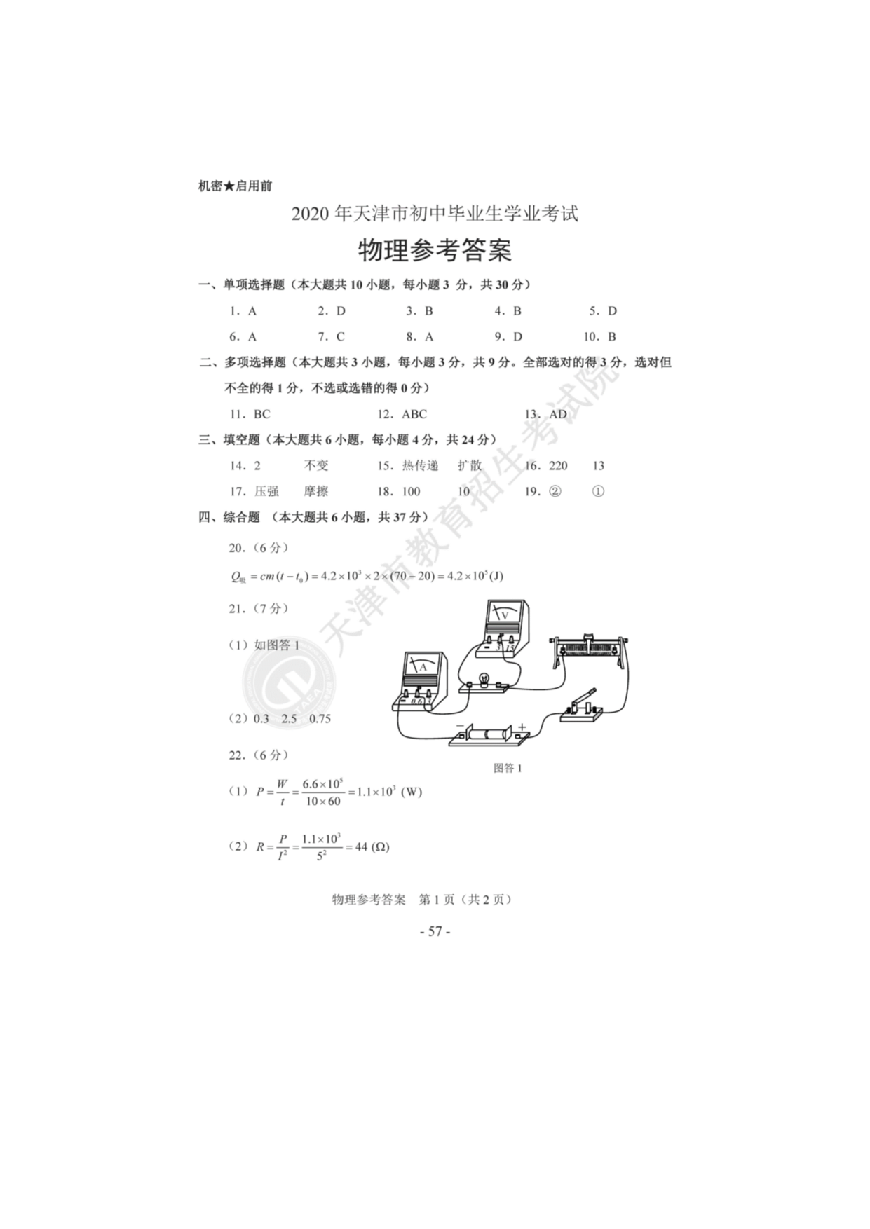 【文档预览】 无忧考网整理发布2020年天津河北区中考物理真题及答案(图片版),前五页预览如下: