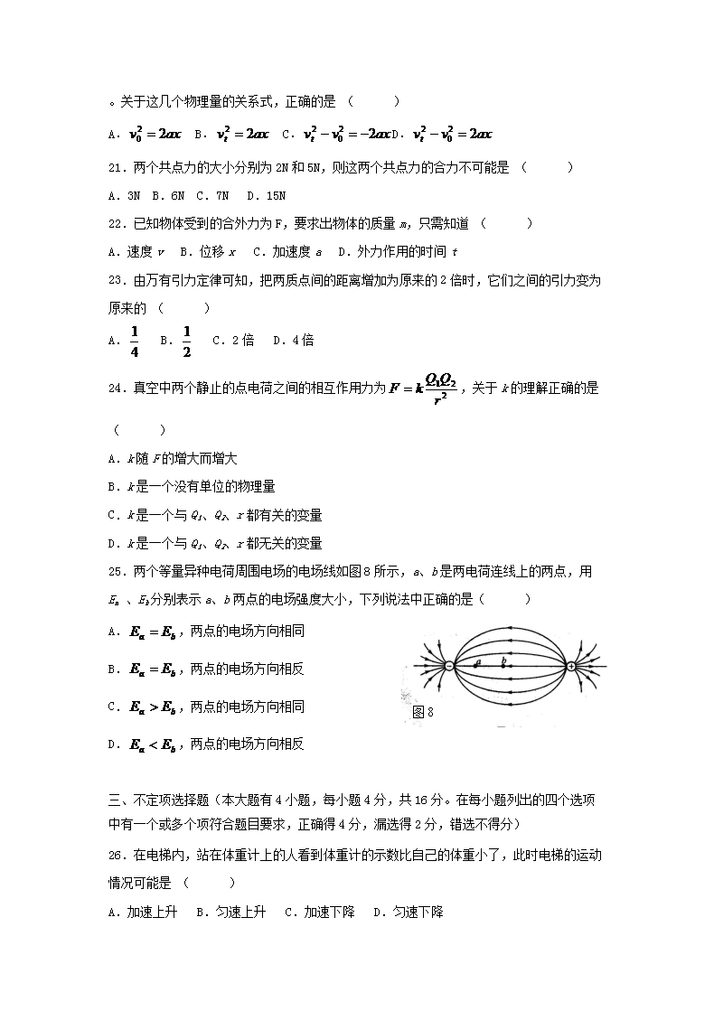 【文档名称】 2014年广西普通高中会考物理真题及答案(Word版).doc