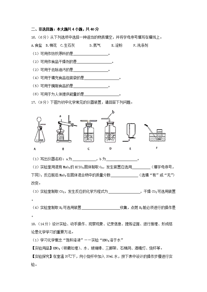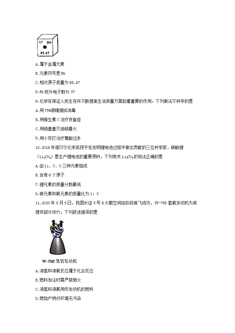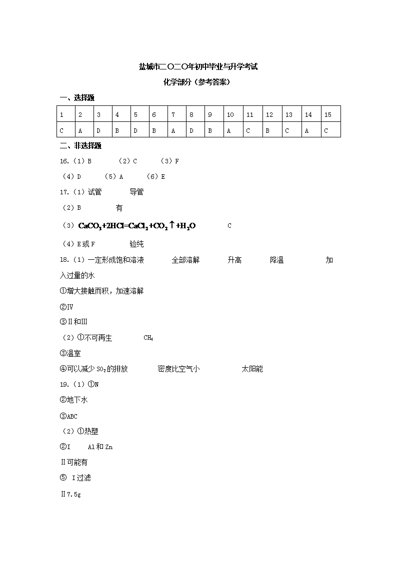 【文档名称】 2020年江苏盐城中考化学真题及答案(Word版).doc