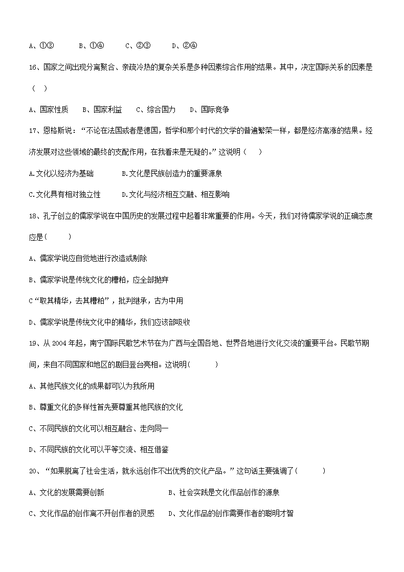 【文档名称】 2014年广西普通高中会考政治真题(Word版).doc
