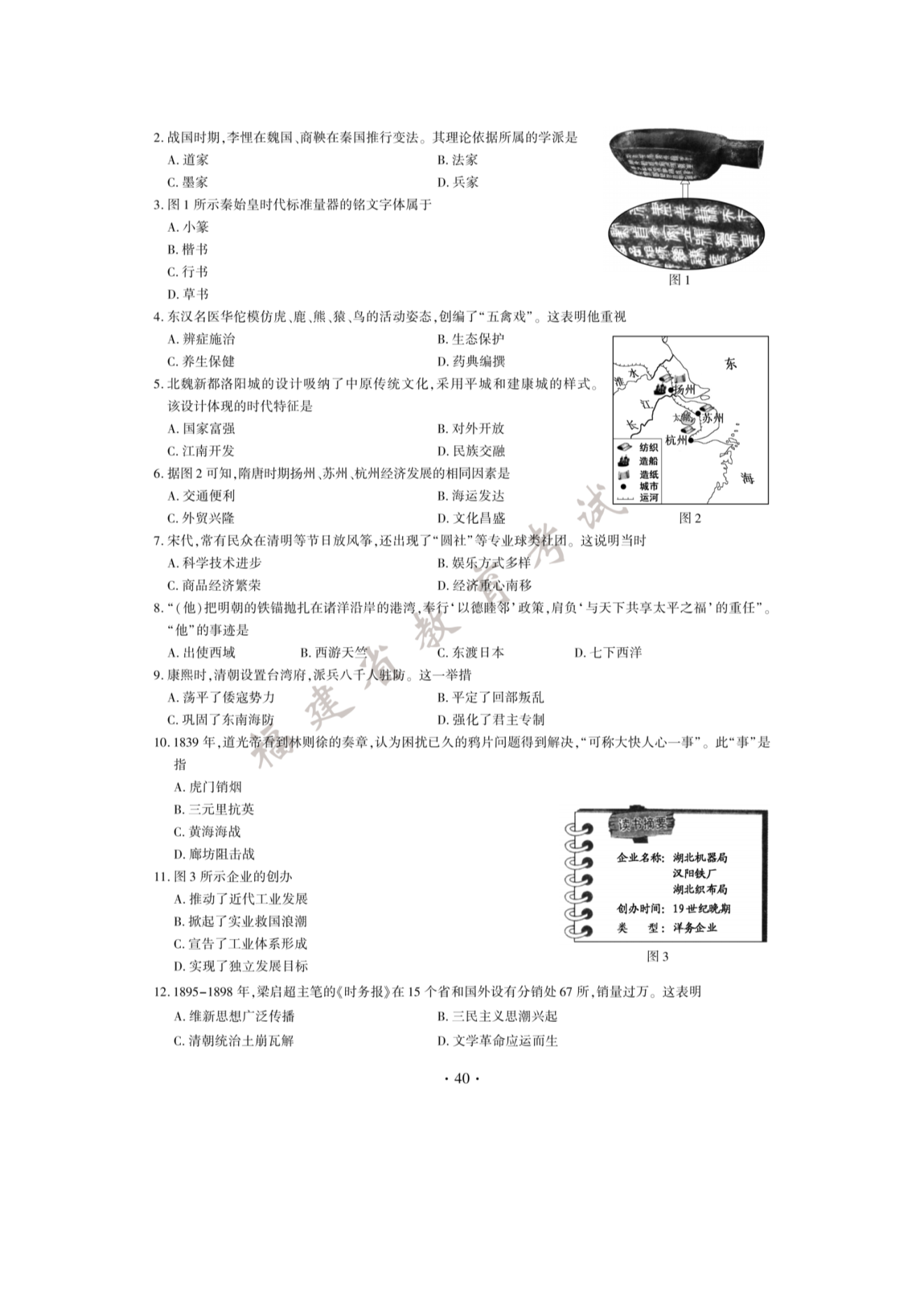 【文档名称】 2020年福建漳州中考历史试题及答案(图片版).doc