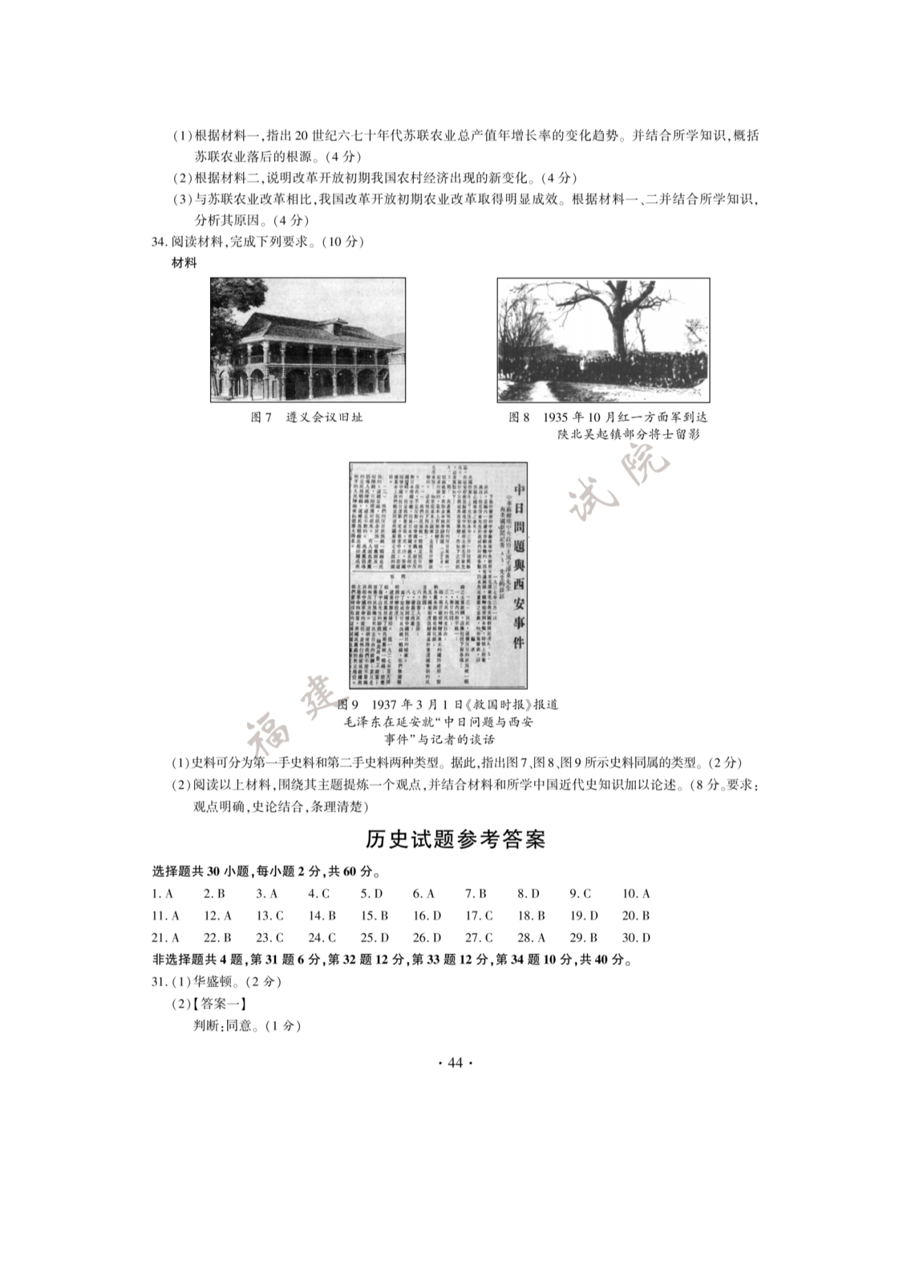 【文档预览】 无忧考网整理发布2020年福建漳州中考历史试题及答案(图片版),前五页预览如下: