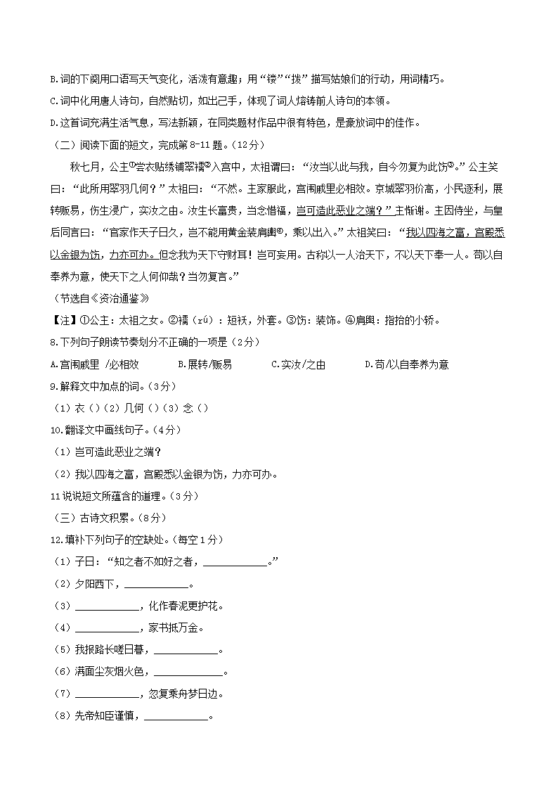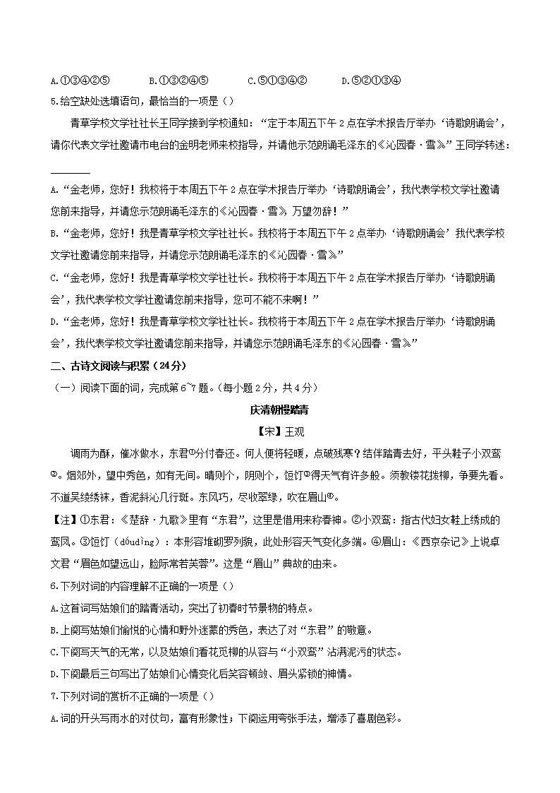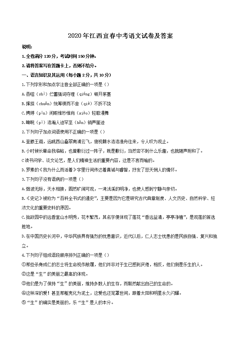 【文档名称】 2020年江西宜春中考语文试卷及答案(Word版).doc