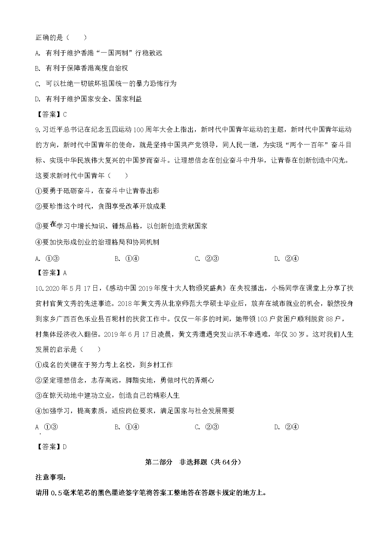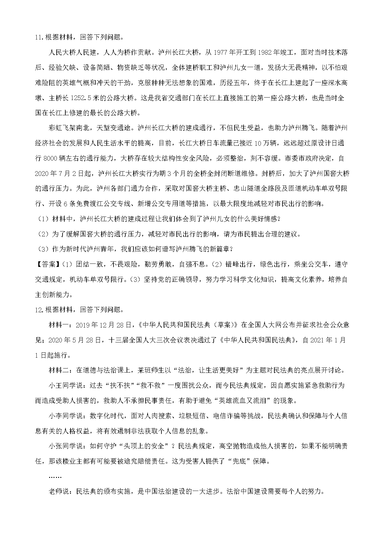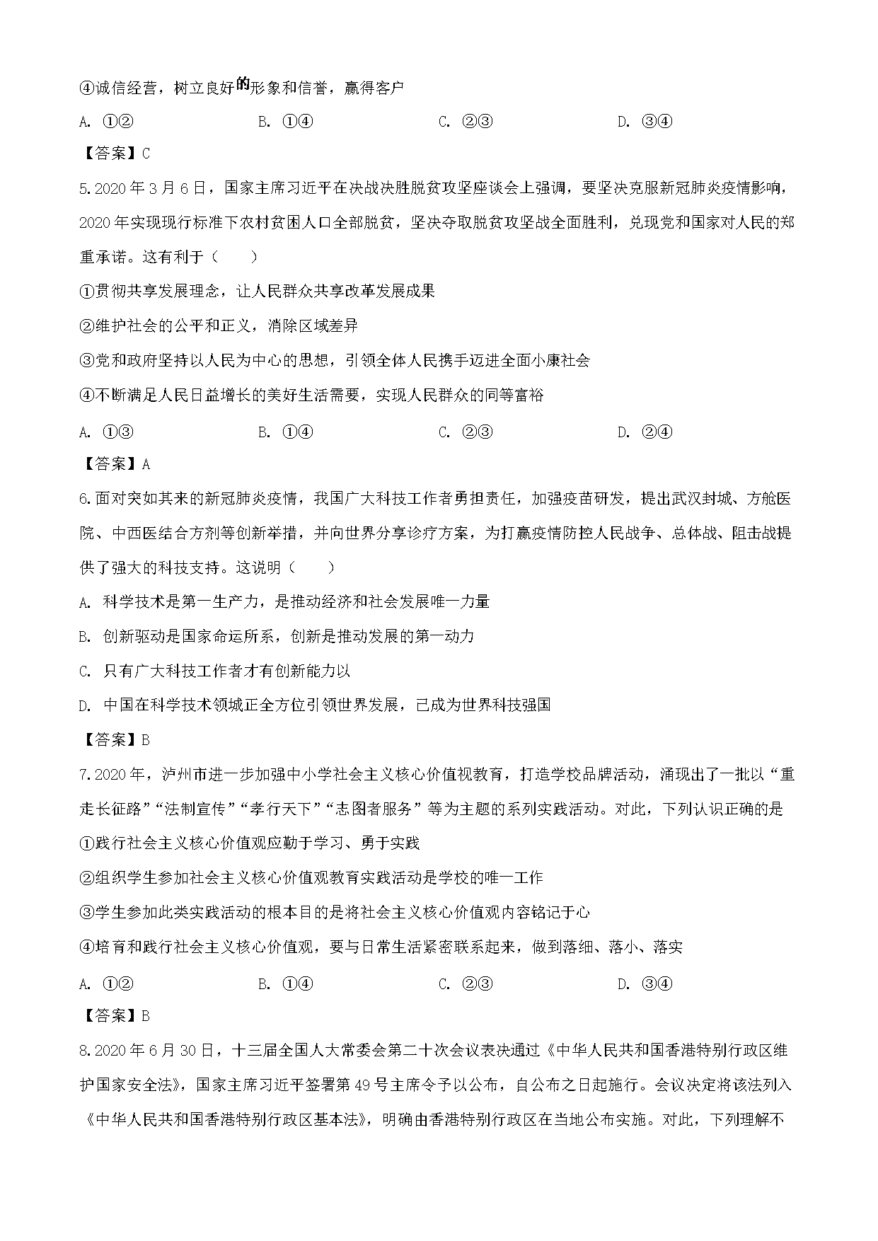 【文档名称】 2020年四川泸州中考政治真题及答案(Word版).doc