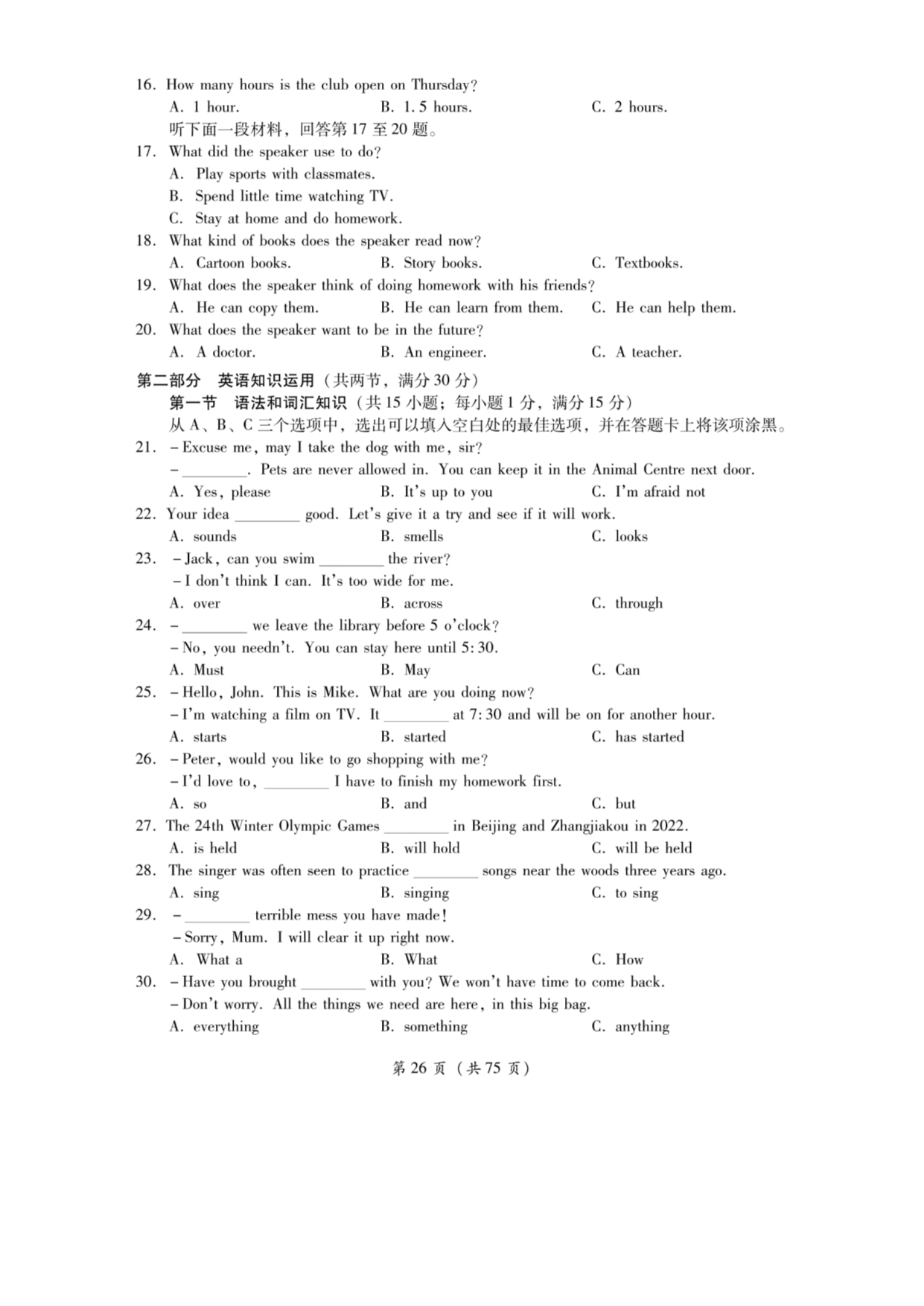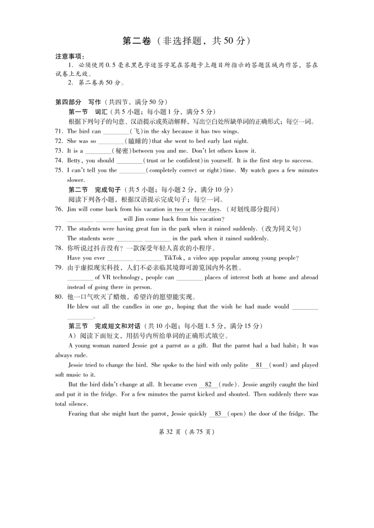 【文档预览】 无忧考网整理发布2020年四川乐山中考英语真题及答案(图片版),前五页预览如下: