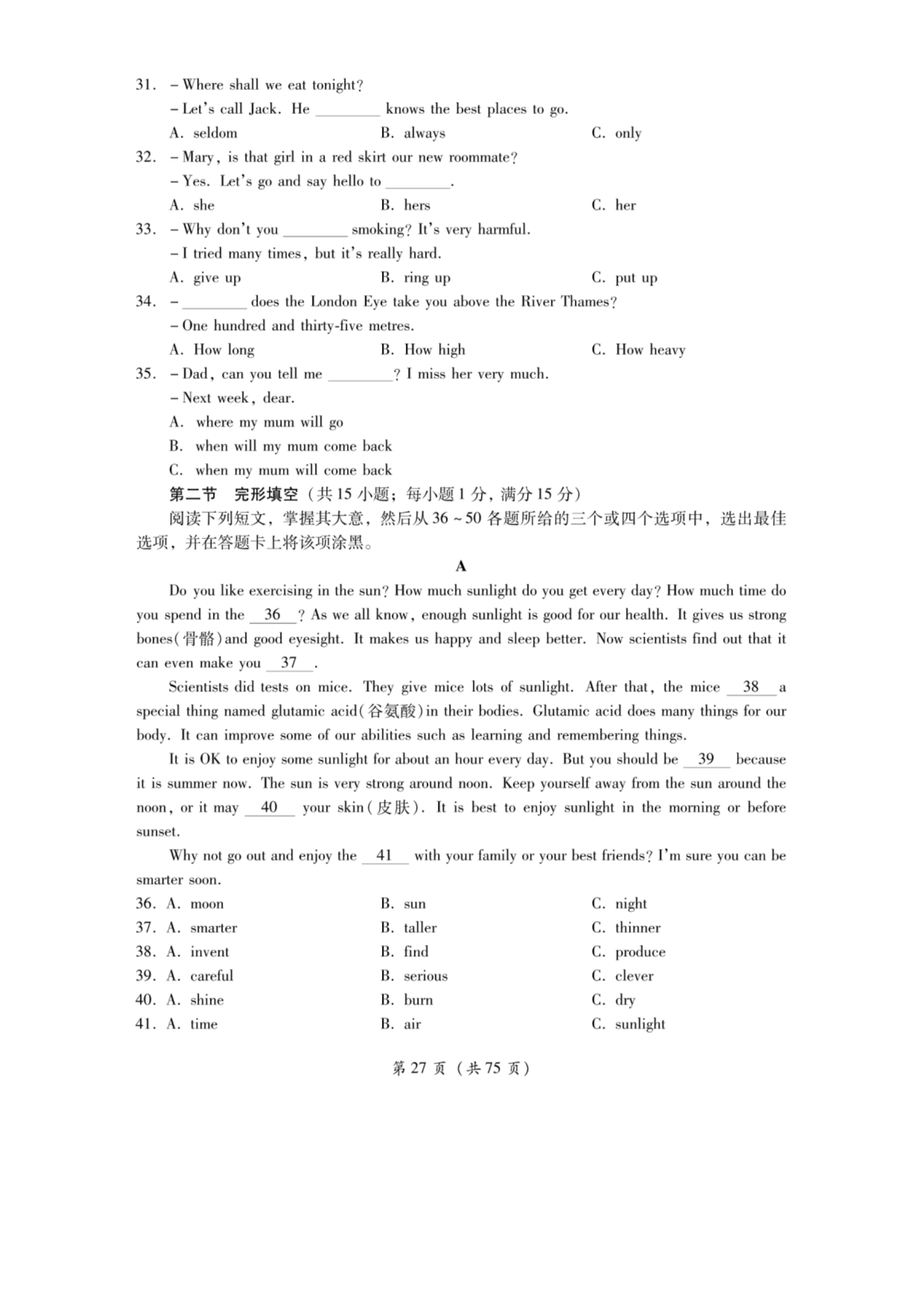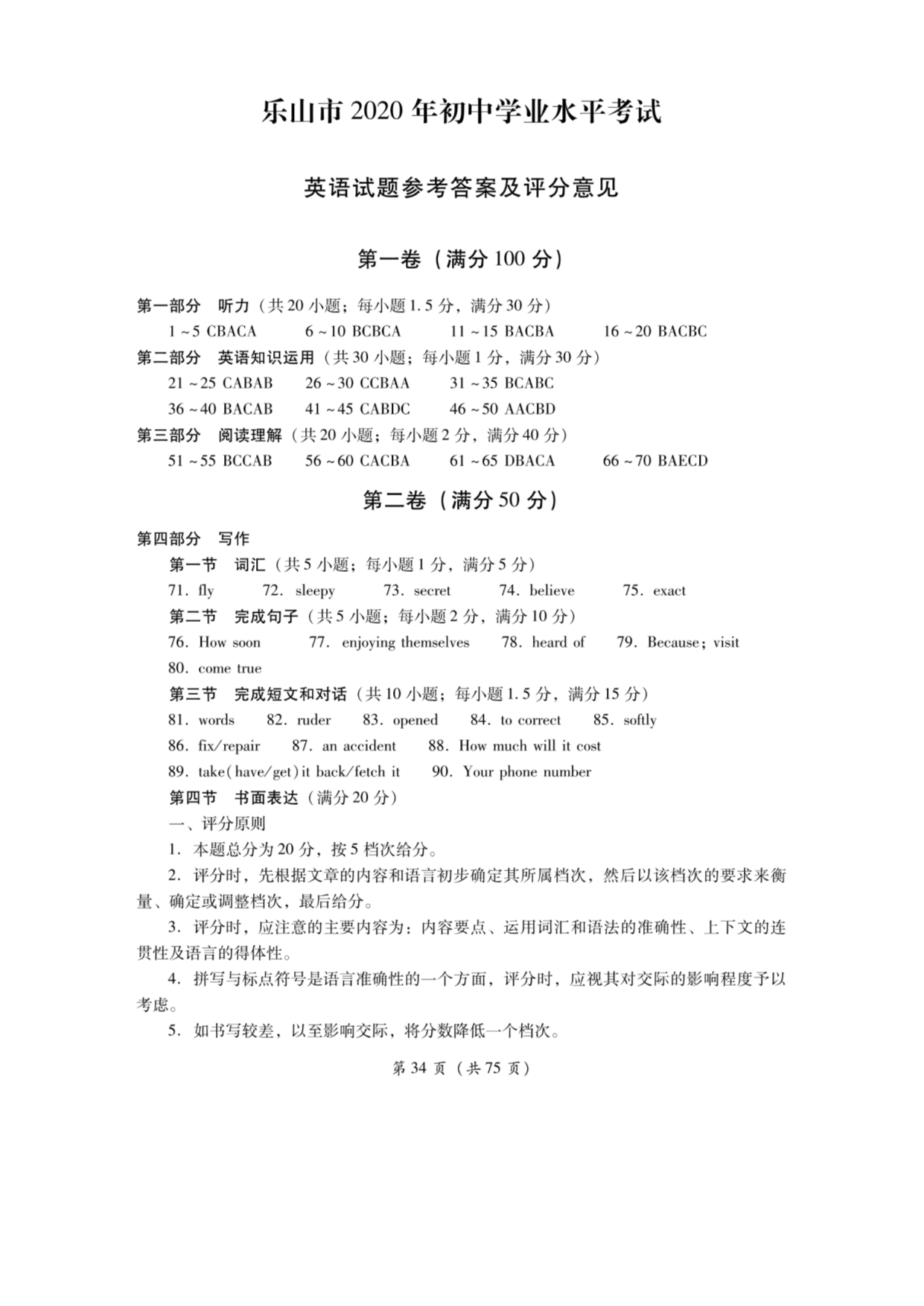 【文档名称】 2020年四川乐山中考英语真题及答案(图片版).doc