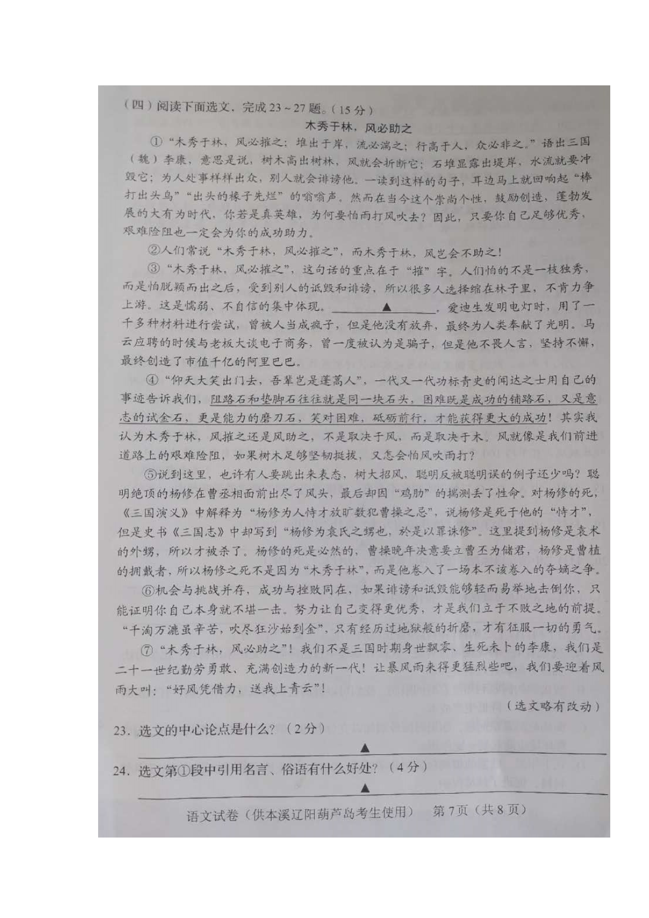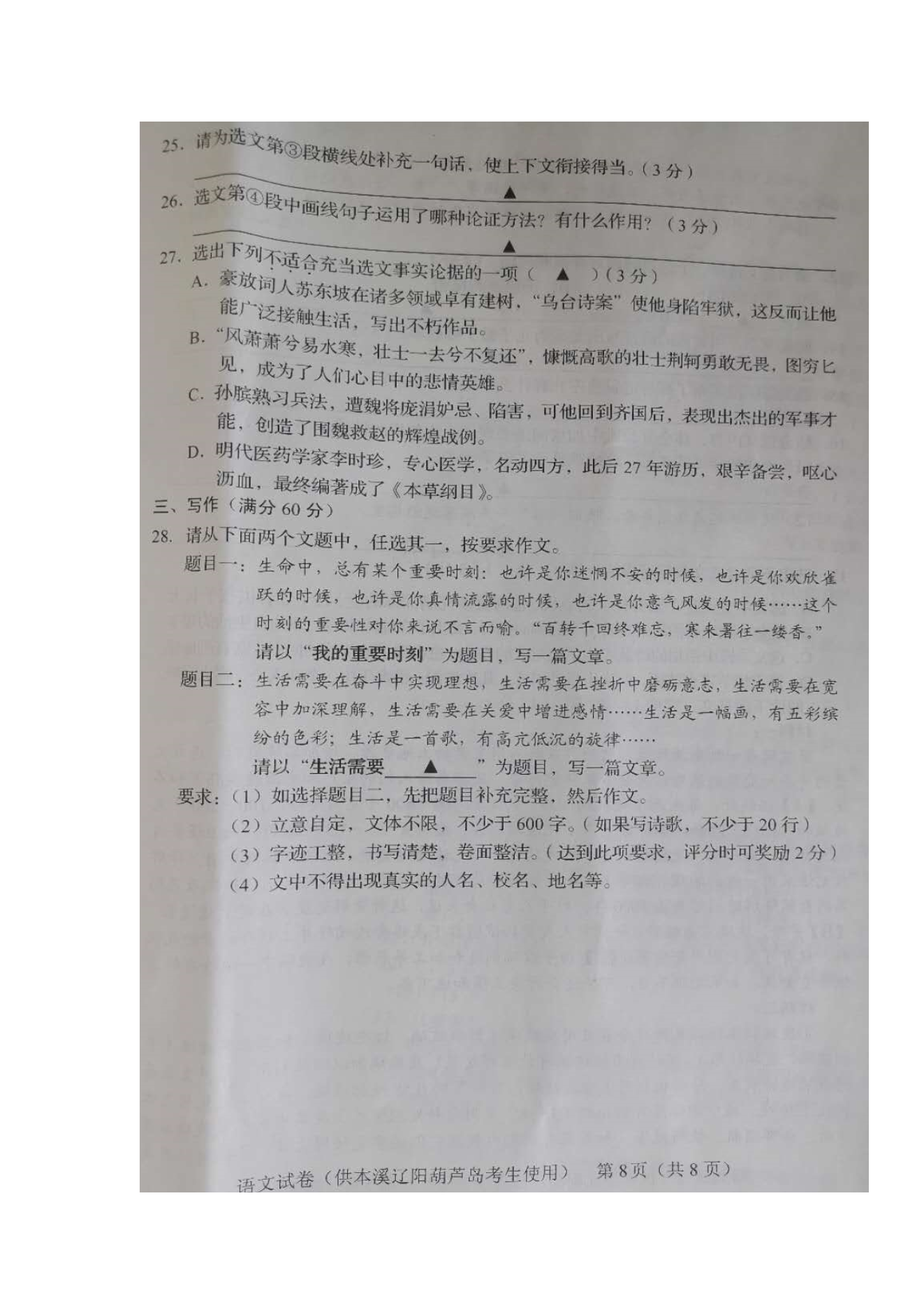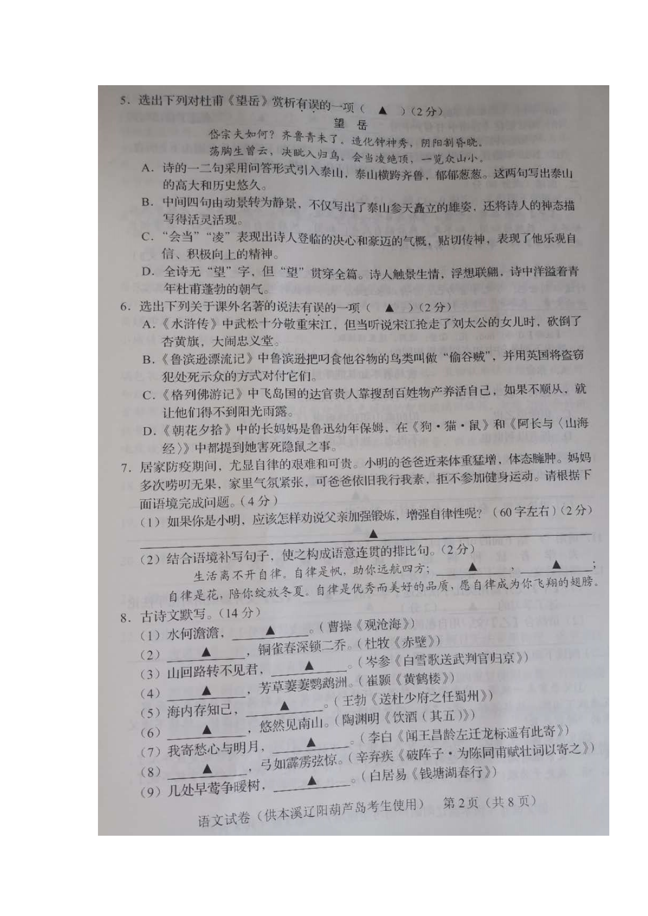 【文档名称】 2020年辽宁本溪中考语文真题及答案(图片版).doc