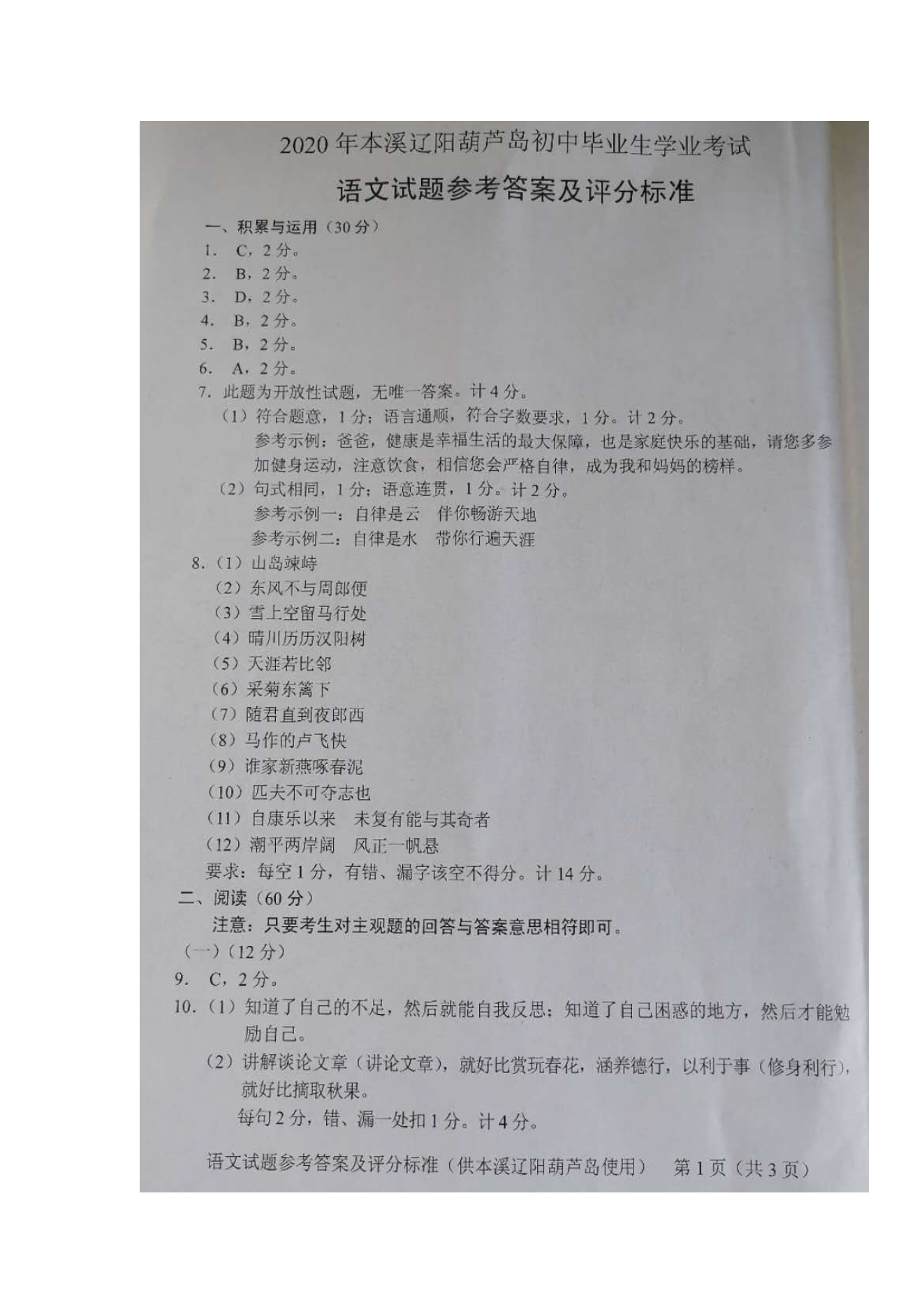 【文档预览】 无忧考网整理发布2020年辽宁本溪中考语文真题及答案(图片版),前五页预览如下: