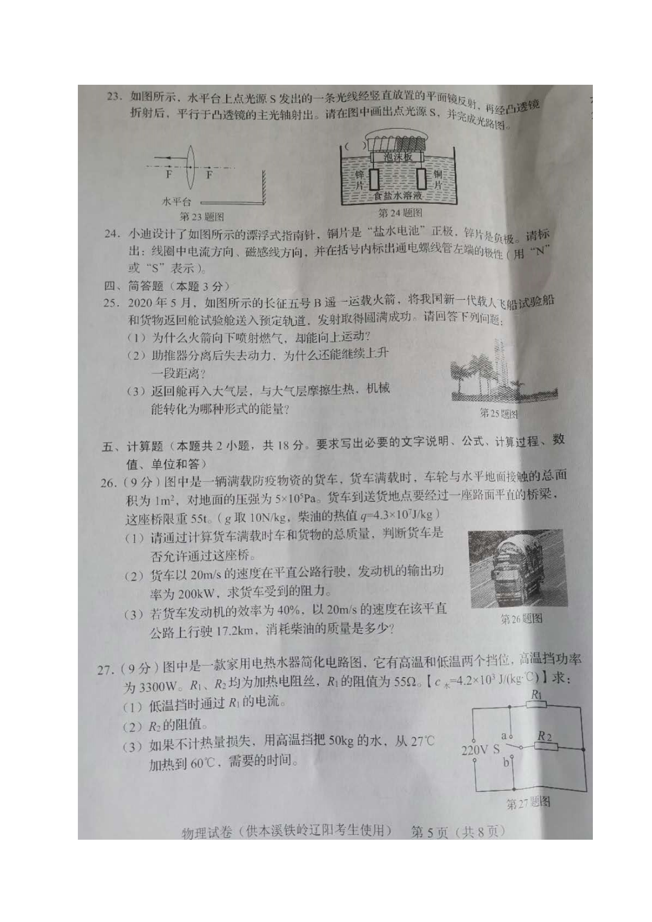 【文档预览】 无忧考网整理发布2020年辽宁辽阳中考物理真题及答案(图片版),前五页预览如下: