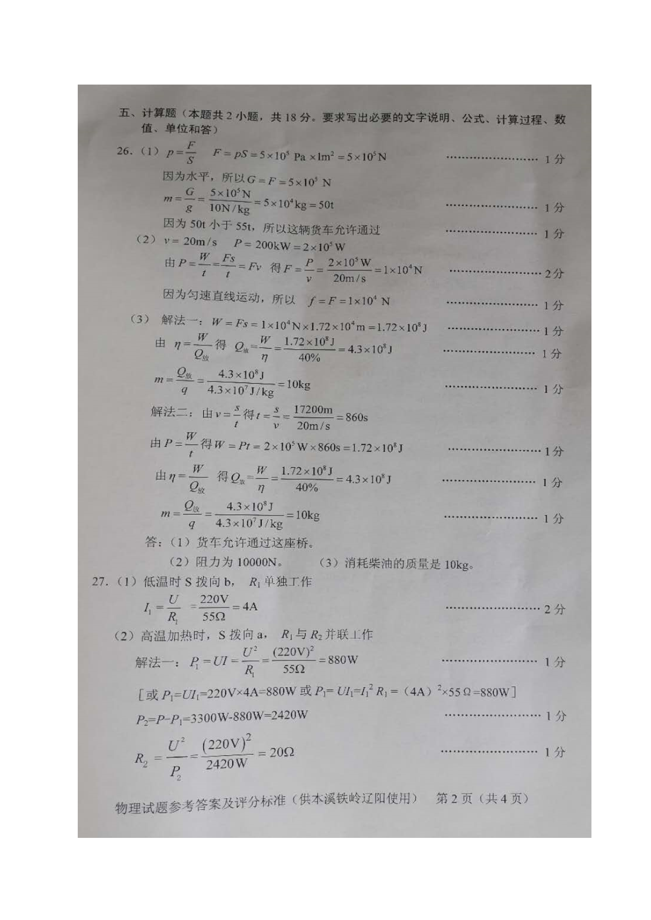 【文档名称】 2020年辽宁辽阳中考物理真题及答案(图片版).doc