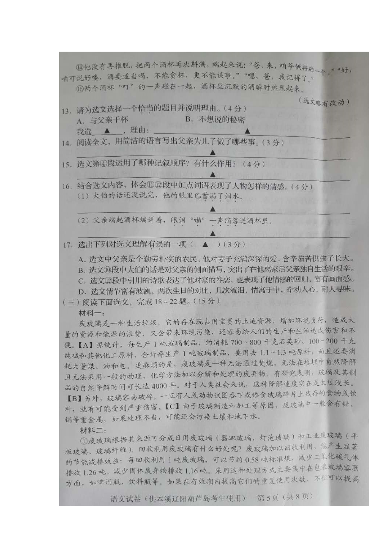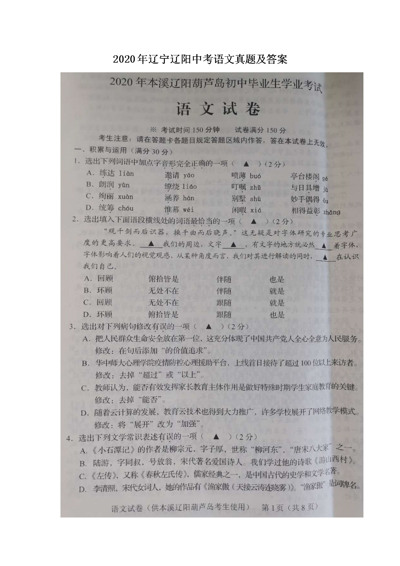【文档名称】 2020年辽宁辽阳中考语文真题及答案(图片版).doc