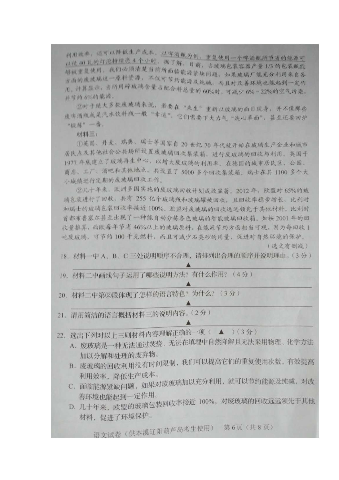 【文档预览】 无忧考网整理发布2020年辽宁辽阳中考语文真题及答案(图片版),前五页预览如下: