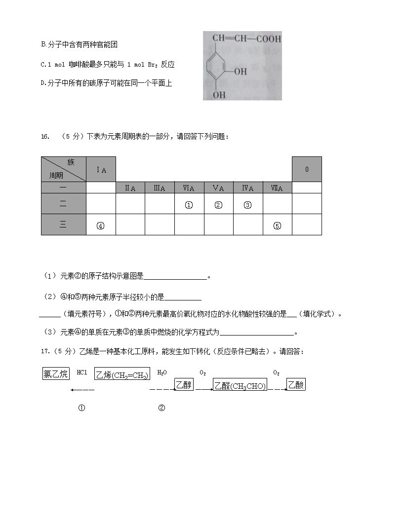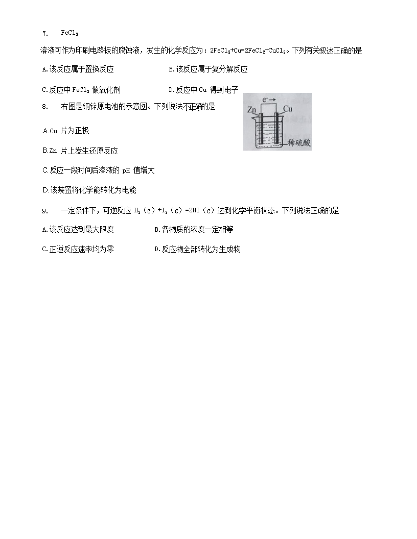 【文档名称】 2018年安徽省普通高中会考化学真题(Word版).doc