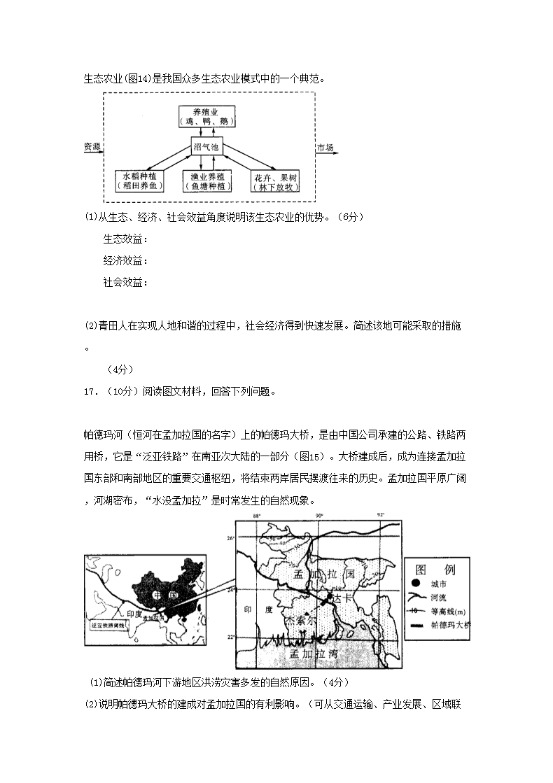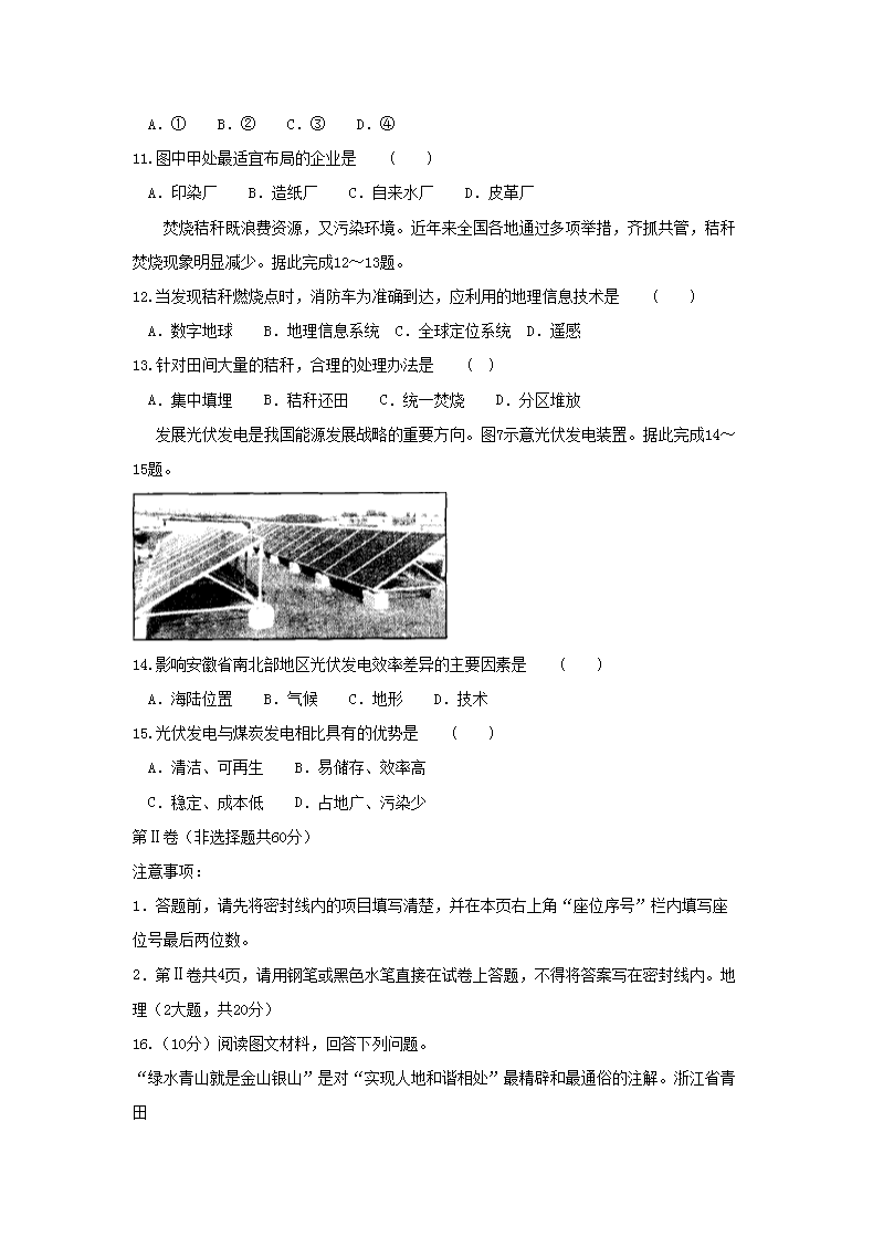 【文档名称】 2018年安徽省普通高中会考地理真题及答案(Word版).doc