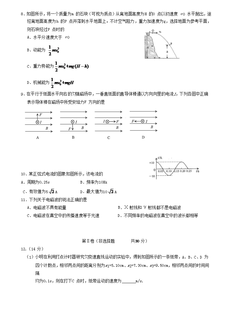 【文档名称】 2017年安徽普通高中会考物理真题及答案(Word版).doc