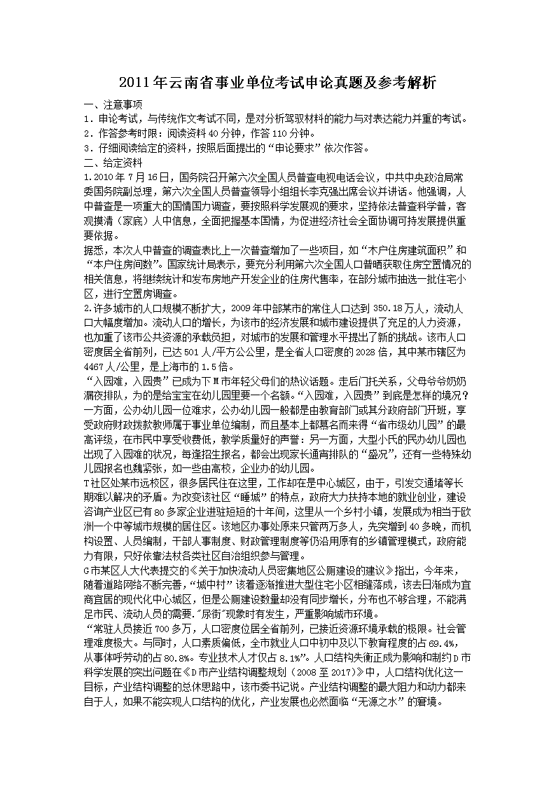 【文档名称】 2011年云南省事业单位考试申论真题及参考解析(Word版).doc