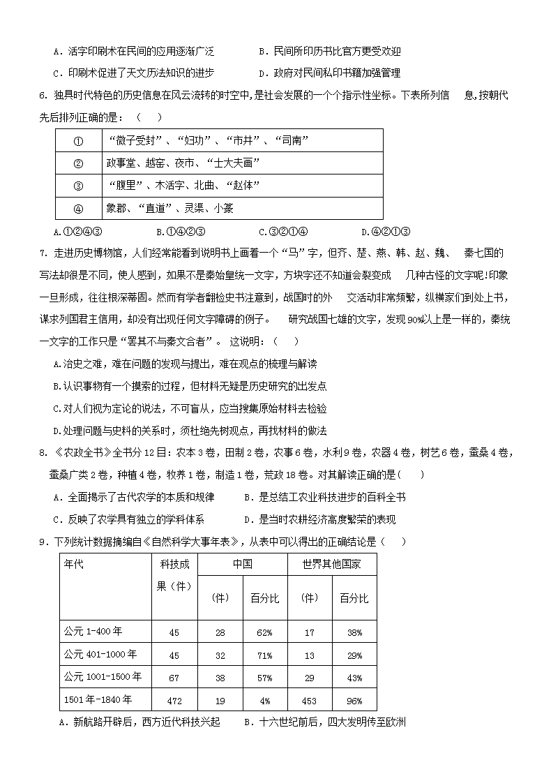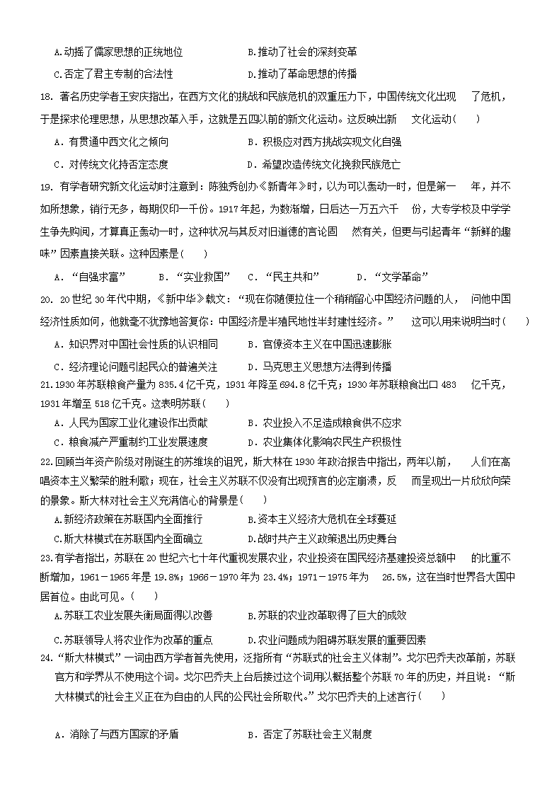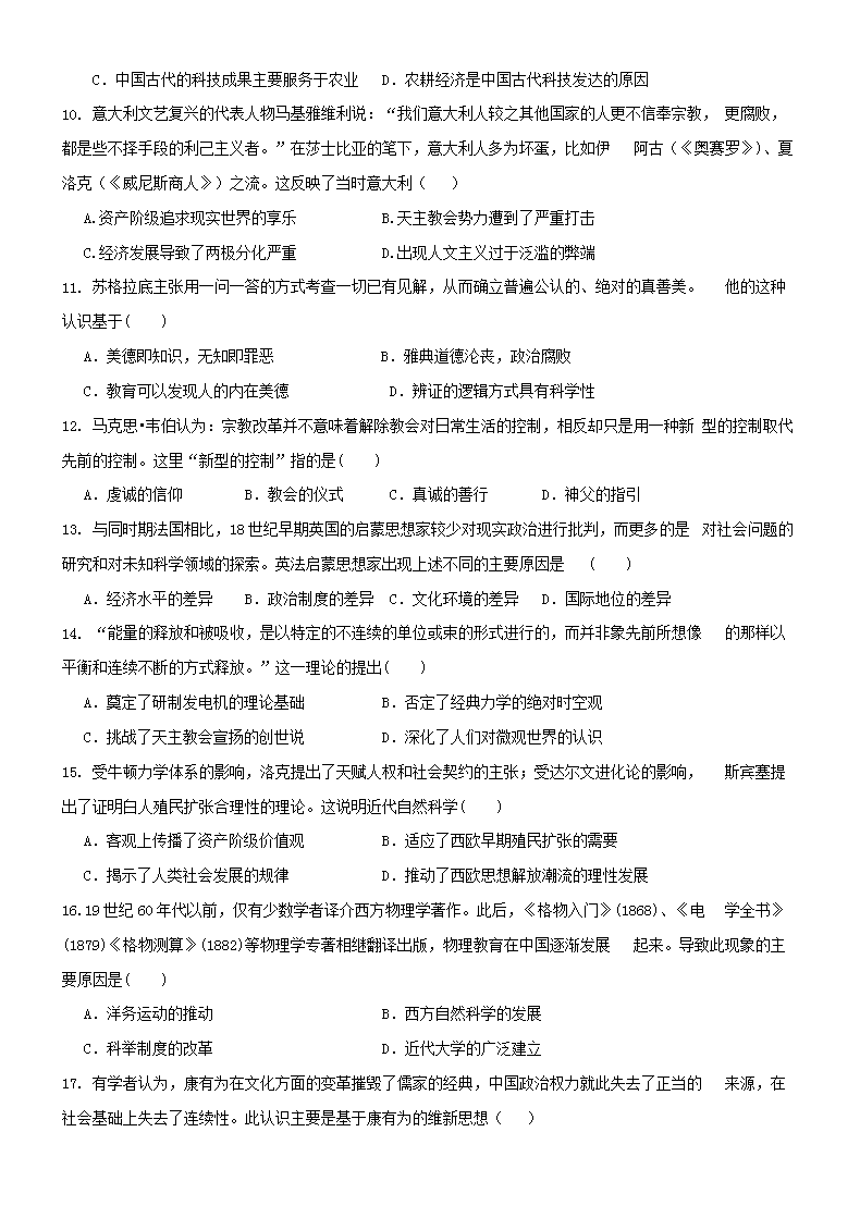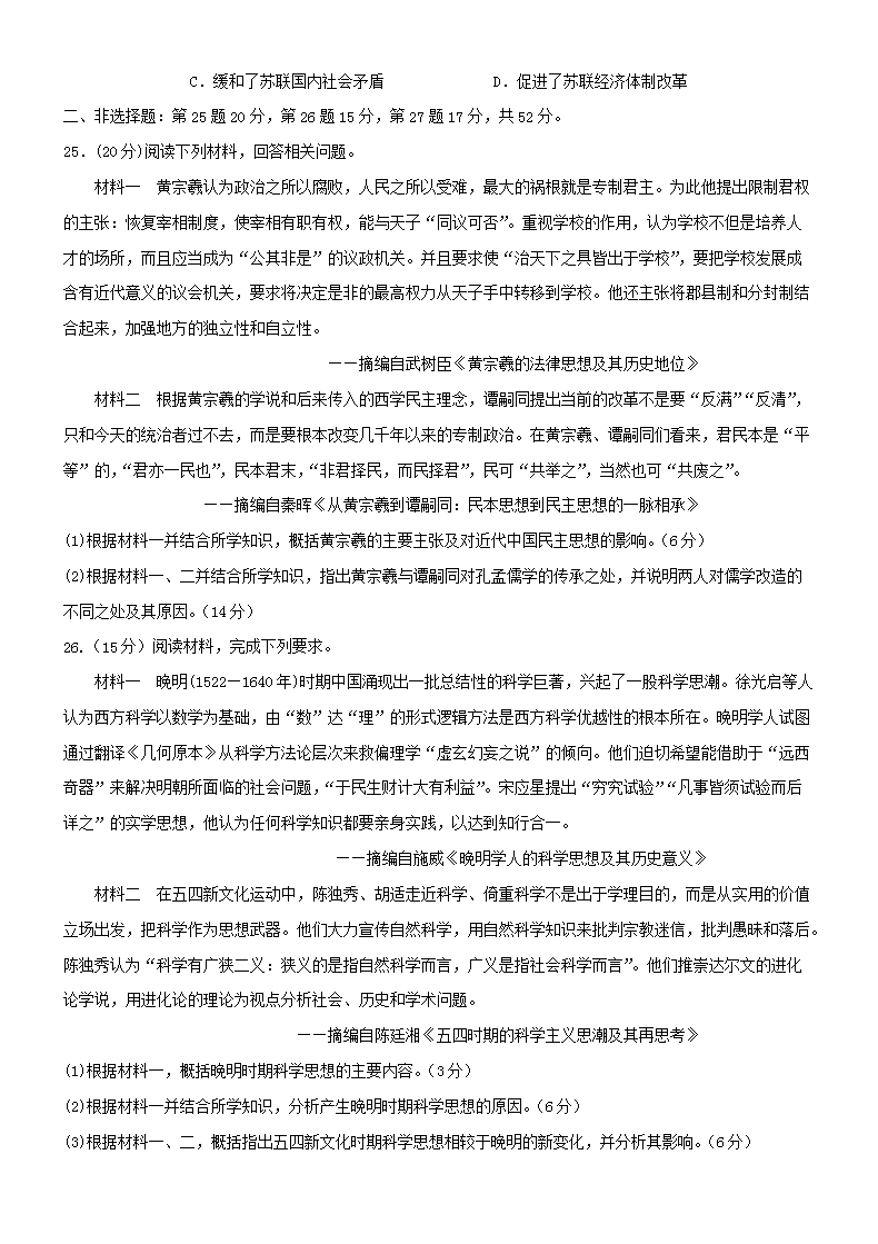 【文档名称】 2019年安徽省普通高中会考历史真题及答案(Word版).doc